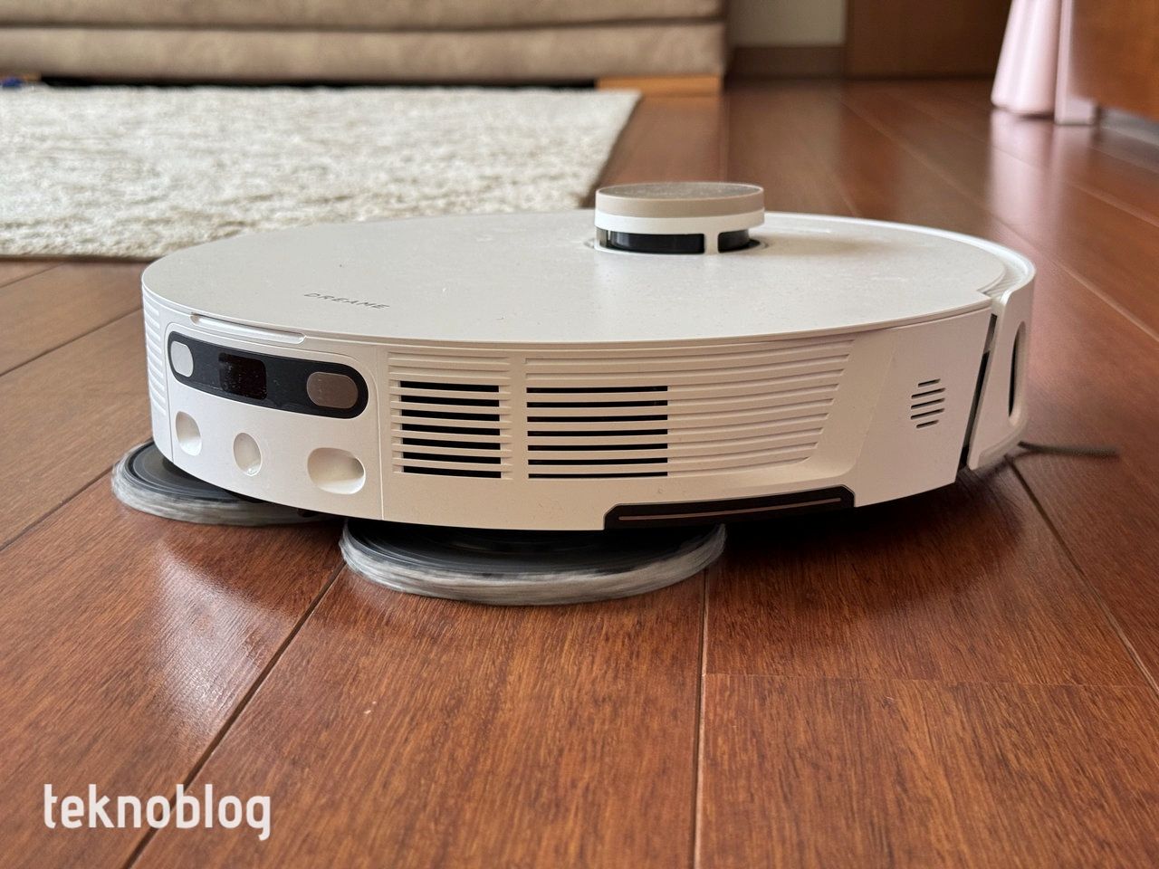 Robotun alt kısmında, göze hoş görünen dairesel bir tasarım var. Burada yer alan iki paspas ile üçlü yan fırça, cihazın temizlik kapasitesini artırıyor. Öte yandan cihazda, kullanıcıları temizlik durumu veya verilen komutlar hakkında bilgilendirme yapmak üzere tasarlanmış bir mikrofon da mevcut. Bu özellik, özellikle evde olmadığınız zamanlarda cihazın çalışıp çalışmadığını anlamanıza yardımcı oluyor.