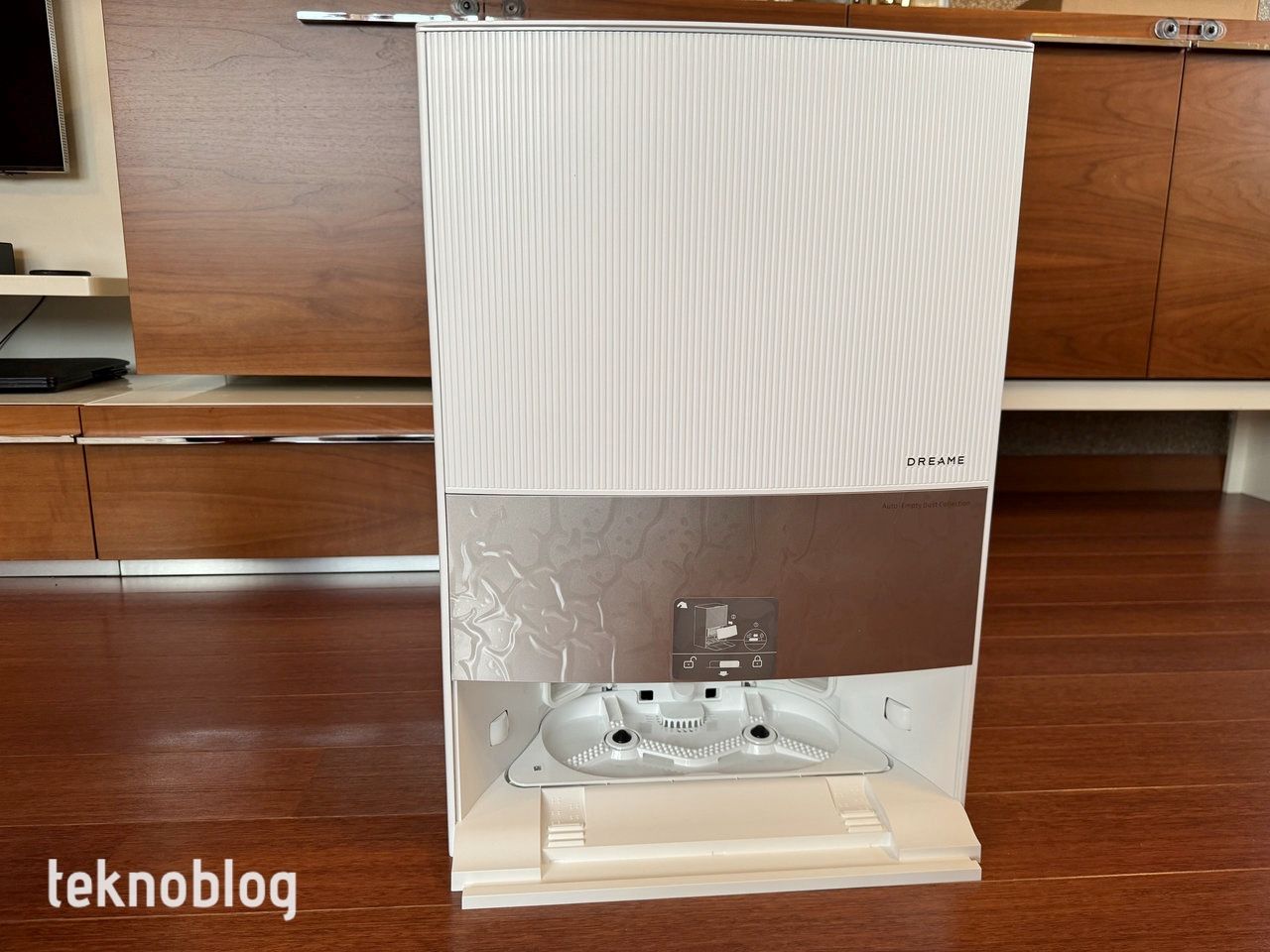 Temizlik istasyonunun kendisi, adeta bir mobilya parçasına benzer boyutlarıyla dikkat çekiyor. 60,7 cm yükseklik, 42,6 cm genişlik ve rampasıyla birlikte 49,9 cm derinlik ölçülerine sahip. Bu büyük boyutları sayesinde, su depolama ve toz toplama gibi fonksiyonlar için geniş bir hacim sağlıyor. Evinizde bu temizlik istasyonunu koyacak bir yer bulmak, biraz planlama gerektirebilir. Çünkü hem temizlik istasyonu için geniş bir alana ihtiyaç var hem de robot süpürgenin erişimi için alt kısımda uygun bir giriş alanı olmalı. Biz de evde robot süpürgenin bu temizlik istasyonunu yerleştirecek alanı bulmakta biraz zorlandık, bir süre düşündükten sonra evin banyosunda, buradaki bazı işlevleri biraz kısıtlayacak şekilde bir yer belirledik. Bu nedenle Dreame L20 Ultra’nın biraz büyük ve geniş evler ve odalar için uygun bir robot süpürge olduğunu söyleyebiliriz.