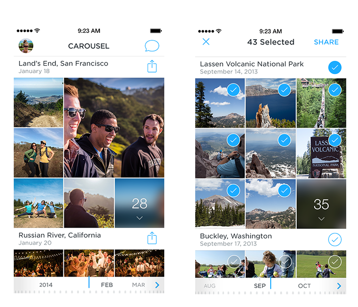 iOS ve Android için yayınlanan uygulamanın tanıtımını düzenlenen etkinlikte Mailbox kurucusu Gentry Underwood gerçekleştirdi. Uygulamanın alt kısmında yer alan bir kaydırma çubuğu kullanıcıların uygulama içinde ileri ve geri gitmesini sağlarken, Dropbox uygulamayı ”tüm hatıralar için tek adres” olarak tanımlıyor.