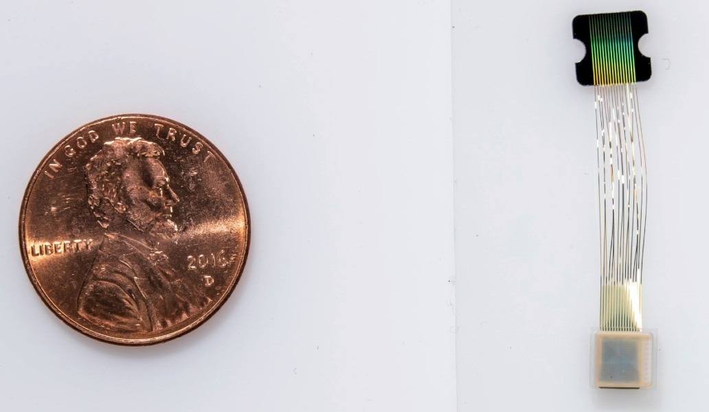 Makaleye göre, bir demet esnek parçacık, bir insan saçının çapının dörtte birine karşılık geliyor. Beyin yüzeyindeki kan damarlarına zarar verilmesini önlemek için de yerleştirme işlemi iğnelerle yapılıyor. Daha sonra gömülü sensörler bilgi alımını gerçekleştiriyor ve bunu yukarıda resmi gösterilen yongaya, kafatasının yüzeyine yerleştirilmiş alıcıya iletiyor. Buradan da kablosuz iletim gerçekleştiriliyor.