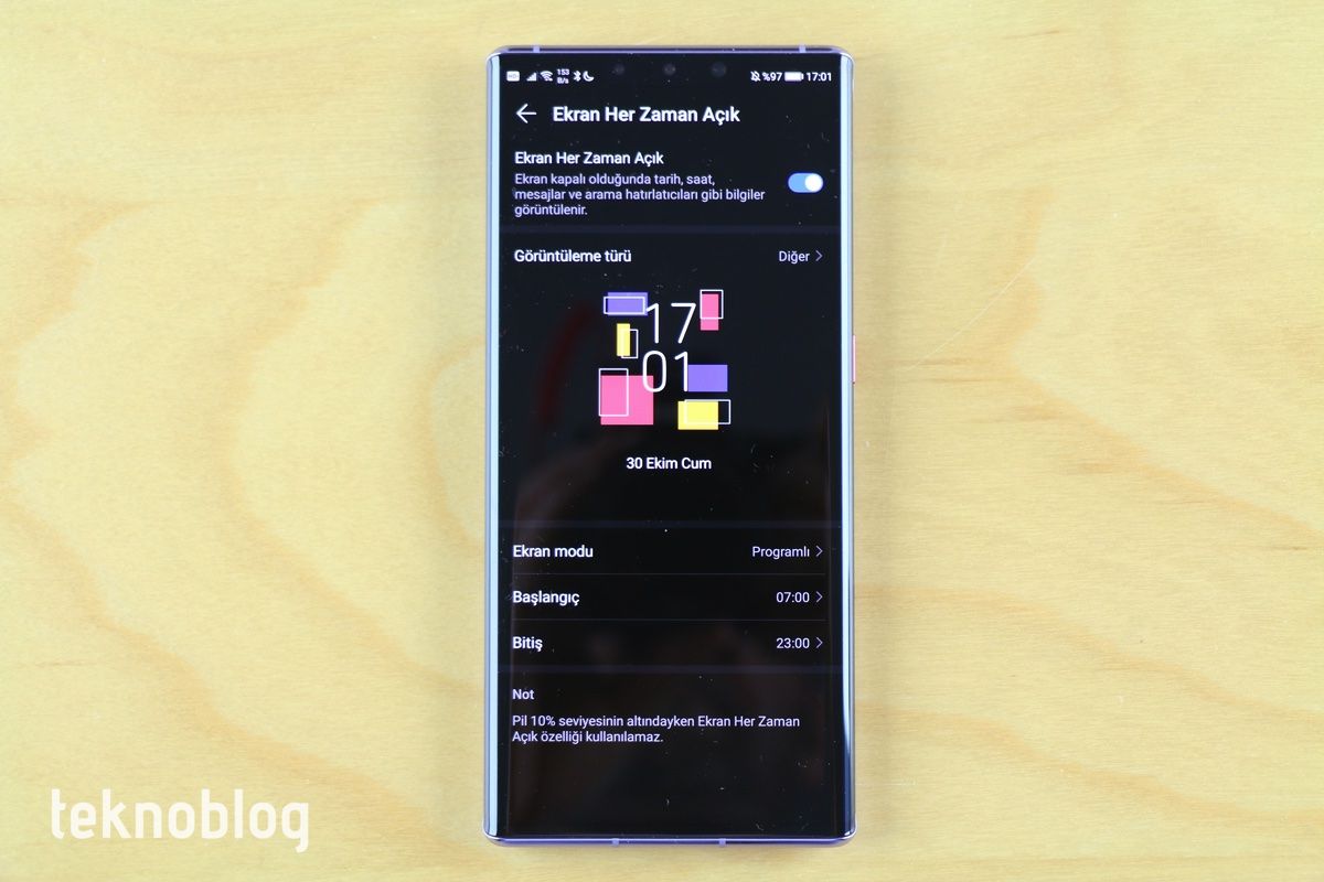 Yeni nesil Her Zaman Açık Ekran (AOD), kullanıcı deneyimine sanatsal bir hava katmanın ötesinde, kullanıcıların şekilleri kendi zevklerine göre kişiselleştirmelerine ve hatta varsayılan renk paletinin ötesine geçerek kendi özel tasarımları için seçtikleri fotoğraflardan renkleri kullanmalarına olanak tanıyor. Buna ek olarak kilit ekran arka planı olarak animasyonlu GIF görüntüsü ayarlayarak kullanıcıların AOD’ye kişisel bir dokunuş eklemelerine olanak tanıyor. Favori bir şiir veya şarkının sözleri, farklı yazı tipleri ve renkler arasında seçim yapma seçeneği ile kullanıcılar ekranı istedikleri gibi kişiselleştirebiliyorlar.