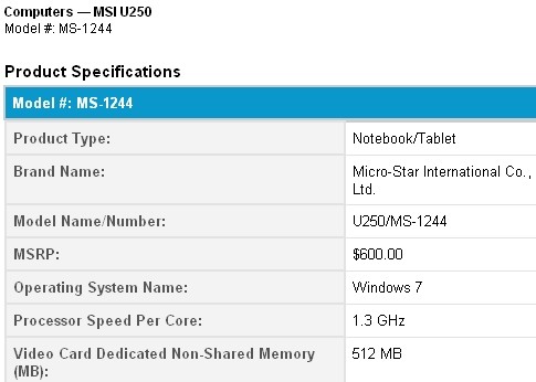 Energy Star etiketini dağıtan kuruluş henüz duyurusu yapılmayan bir ürünle ilgili detayların ilk kez ortaya çıkmasına vesile oldular. Söz konusu cihaz MSI Wind U250 netbook.