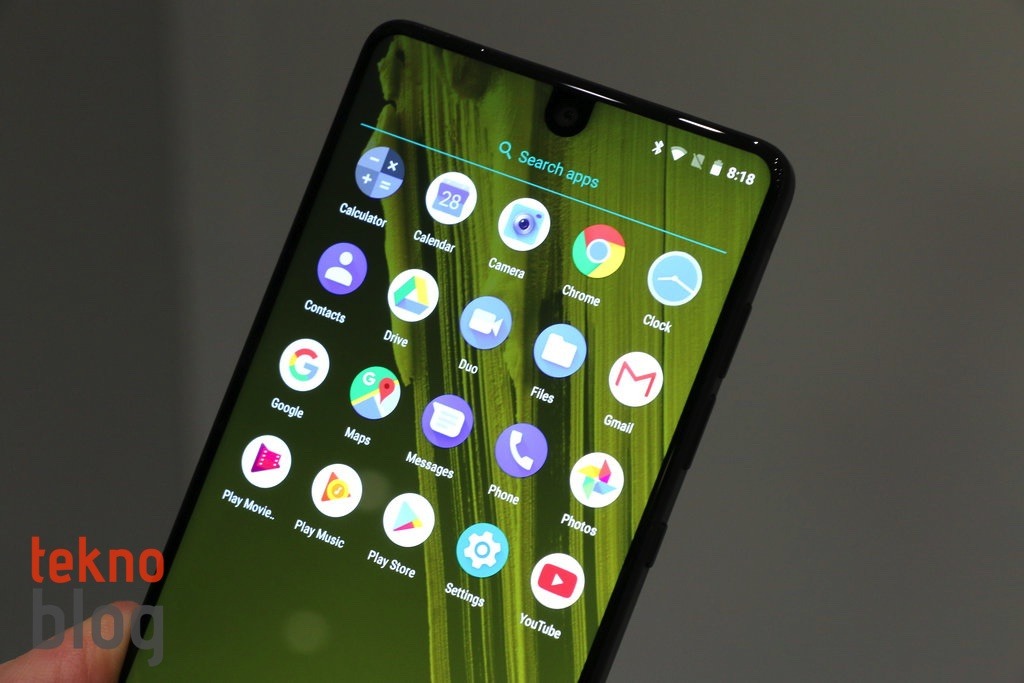 Kameranın yol açtığı çentik, görsel deneyimde herhangi bir olumsuzluk yaratmıyor. Essential, işletim sisteminde çentikli bölümün arayüze fazla karışmamasını tercih etmiş. Desteklemeyen uygulamalarda çentiğin her iki yanı ya siyah renkte geliyor, bu sayede çentik olduğu anlaşılmıyor, ya da uygulamanın renk düzeniyle uyumlu renkte bir şerit çekiliyor. Bu şerit üstünde de bildirim çubuğu elemanları normal bir şekilde gösteriliyor.