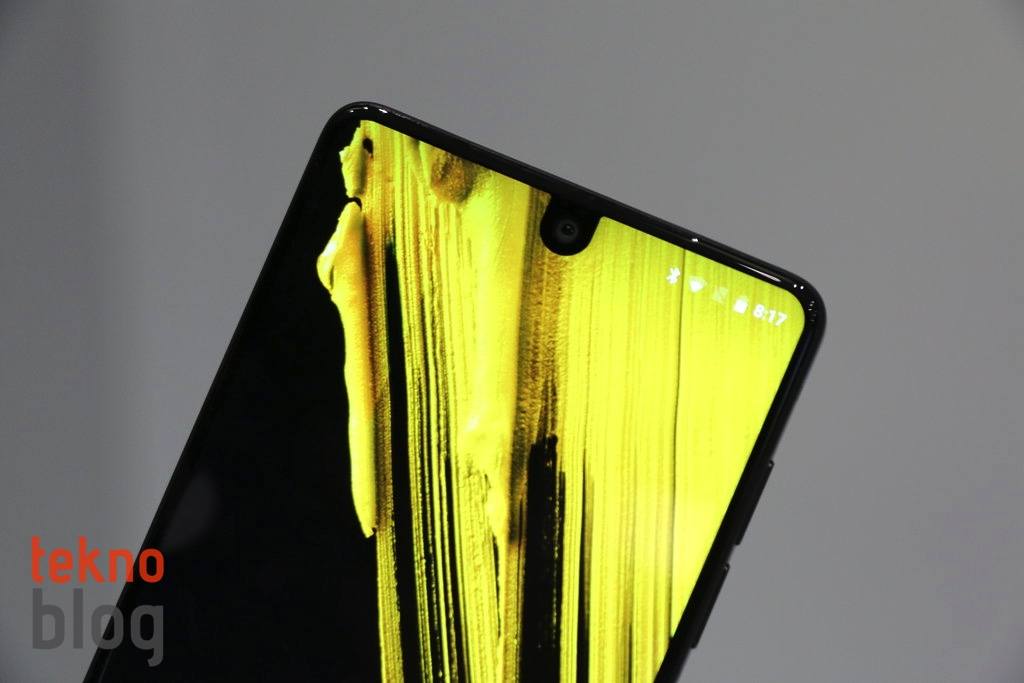 Essential Phone sıfır ekran çerçeveli tasarımı ilk uygulayan şirketlerden biri sayılır. Hatta ekranındaki çentiğiyle meşhur olan iPhone X daha çıkmadan önce Essential Phone, 8 megapiksel kamerasının etrafını çevreleyen ekranıyla dikkatleri üstüne çekmişti. Ekranın alt kısmında çok az bir alan mevcut. Yani, genel olarak, 5.7 inç, köşeden köşeye uzunluğa sahip oplan ekranın ön yüzün neredeyse tamamını kapladığını söyleyebiliriz.