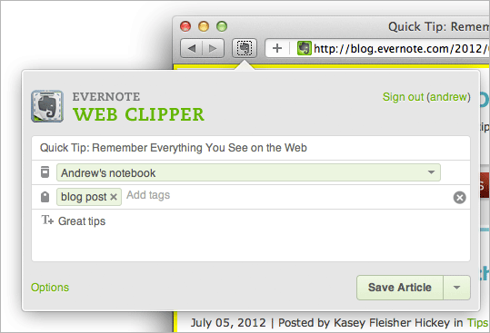 İlgili >> Evernote Web Clipper, Evernote Blog