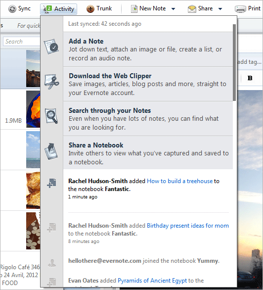 Evernote’un Windows uygulaması yapılan güncellemenin ardından Aktivite sekmesine kavuştu. Bu sekme sayesinde kullanıcılar paylaştkları defterleri ne zaman güncellediğini daha kolay takip edebilecekler. Menü çubuğuna eklenen uydu ikonuna tıklanarak bu sekmeye ulaşmak mümkün. Defterlere güncelleme yapıldığında bu ikonun yanında belirecek yeşil ışık sayesinde kullanıcılar güncellemelerden haberdar olabilecekler.