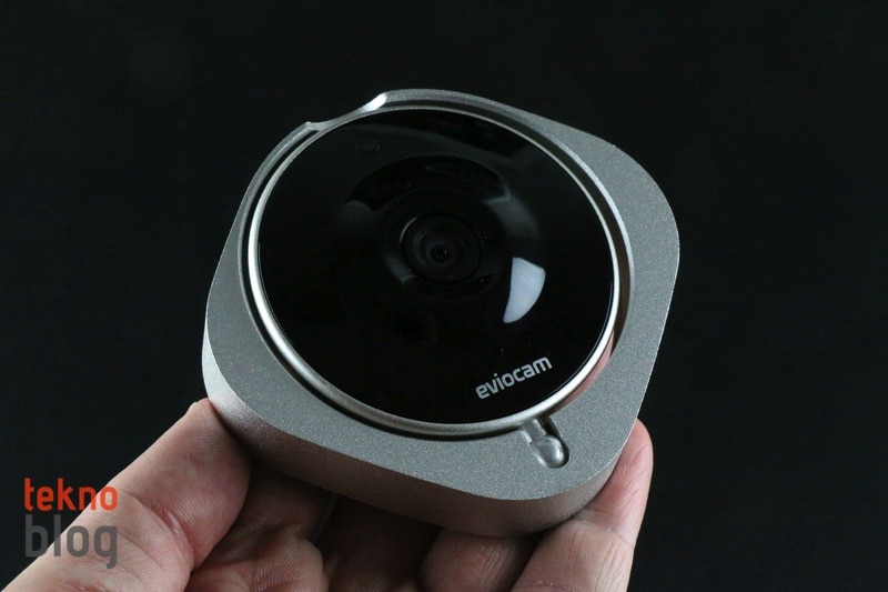 Eviocam şık alüminyum gövdeye ve parlak siyah ön panele sahip. 93.5 x 88.7 x 41 mm.’lik boyutlara ve 190 gr. ağırlığındaki kamerayı her yere de rahatlıkla taşımak mümkün. Yuvarlatılmış köşeleri de kameraya değerli bir hava katıyor. Doğrusu Eviocam çoğu evin tasarımına uyum gösterecek, ev konusunda genelde hassas olan kadınların bile içine sinen bir ürün olacaktır. Kamera bölümümenteşeli yapısı sayesinde farklı açılarda kullanıma izin veriyor. Menteşeyardımıyla kameranın duruş açısını artırarak bir masa veya vitrin rafında kararlı şekilde durmasını sağlayabileceğiniz gibi, kutusundan çıkan aksesuar yardımıyla bir duvara monte edip bu şekilde de kullanabilirsiniz.