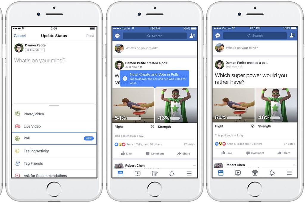 Facebook kullanıcıları bundan böyle web, iOS ve Android uygulamaları üzerinden anket oluşturup takipçilerine soru yöneltebilecek. Kullanıcılar cevap seçeneklerine yazının yanı sıra fotoğraf veya GIF animasyonu ekleyebilecek.