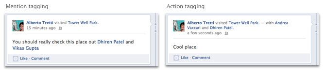 Facebook’un Open Graph için devreye soktuğu yeni özellik ile Facebook’a bağlı uygulamalar aracılığı ile de etiketleme yapmak mümkün hale geldi. Orijinal adı ”Mention Tagging” olan bu özellik sayesinde bağlantılı uygulamalar aracılığı ile Facebook’a gönderilen iletilerin daha anlamlı bir şekle bürünmesi hedefleniyor.