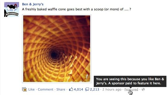 Facebook’un daha fazla reklam geliri elde etme yönündeki girişimlerinin bir tanesi olan haber kaynağına reklam alma uygulaması faaliyete geçti. Facebook kullanıcıları, kullanıcıların Facebook’a girdiklerinde karşılarına çıkan ana sayfa niteliği taşıyan haber kaynağı sayfasında, orta sütunda bulunan ana içerikte “Featured (Öne Çıkan)” etiketini taşıyan reklamlar görmeye başladı.