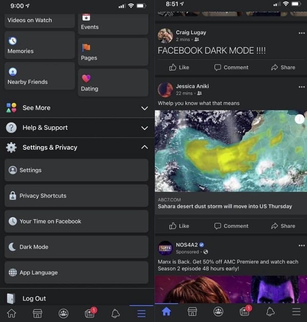 Artık Facebook kullanıcıları karanlık modu denemek için masaüstü uygulamasından başka bir seçeneğe daha sahip olacak. SocialMediaToday sitesinde yer alan habere göre, Facebook mobil uygulamalarında da karanlık mod testlerine başladı.