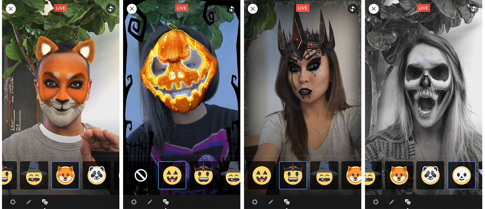 Facebook, Cadılar Bayramı için Snapchat kılığına girmeyi seçmişe benziyor. Sosyal paylaşım sitesinin canlı yayın aracı Facebook Live Cadılar Bayramı için Snapchat’i hatırlatan hafif ürkütücü filtreler hazırladı. Filtreleri uygulamak için önce canlı yayını başlatmak, ardından da ekranın üstündeki sihirli değneğe dokunmak ve maske ikonunu seçmek gerekiyor. Kurukafa, kötü kalpli kraliçe, bal kabağı ve cadı maskeleri canlı yayında uygulanabiliyor.