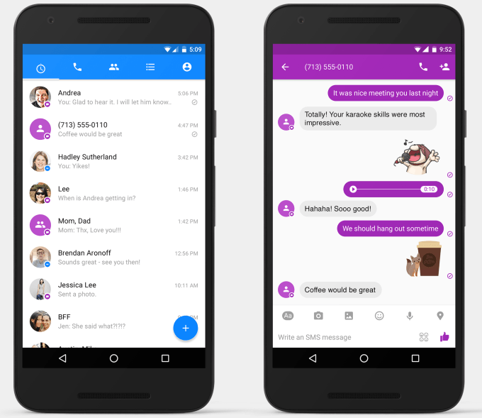 Facebook Android telefon sahiplerinin tüm mesajlaşma ihtiyaçlarını karşılamak için bir kez daha kolları sıvıyor. Bunun için Facebook Messenger Android uygulaması içine yerleştirdiği özelliğin dağıtımını yapmaya başlayan sosyal paylaşım sitesi, uygulamanın Facebook mesajlarını ve standart SMS mesajlarını tek bir arayüzde buluşturmasını mümkün kılıyor.
