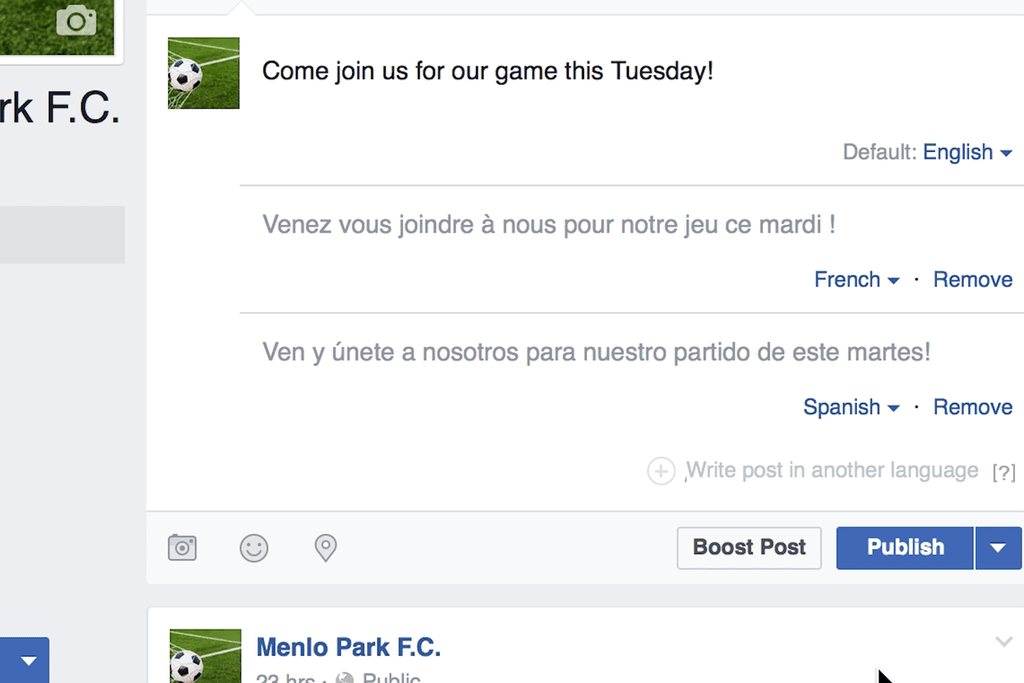 Böylelikle Facebook’u İngilizce olarak kullanan kişiler, paylaşımın İngilizce versiyonunu görecek. Facebook’un hali hazırda tercüme edebildiği 45 dili destekleyen yeni oluşturucunun dağıtımı bugün itibarıyla başladı. Araçtan faydalanmak için hesap ayarları menüsünden dil tercihleri menüsüne gitmek ve “birden fazla dilde paylaşıma izin ver” seçeneğini işaretlemek gerekiyor.
