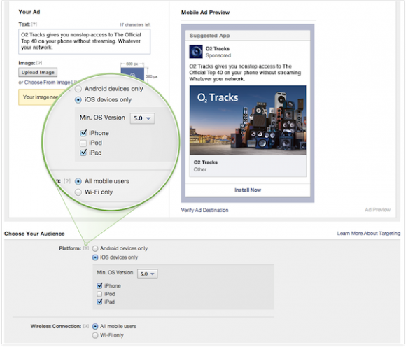 Güncellenen servis sayesinde yazılımcılar Facebook’ta yayınladıkları reklamlarıyla daha belirgin bir mobil kullanıcı grubuna seslenebilecekler. Şu an için sadece iOS ve Android için mevcut olan bu özellik kapsamında geliştiriciler sadece iOS 5 veya Android 4.2 Jelly Bean işletim sistemli cihazlara yönelik ilanlar verebilecekler. Yazılımcılar diledikleri takdirde reklamları için daha geniş bir kitle oluşturma şansına sahipken, isterlerse sadece WiFi bağlantı özellikli cihazları da hedef kitlesi olarak seçebilirler.