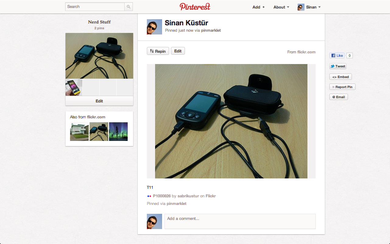 Pinterest aracılığı ile paylaşma seçeneği her fotoğrafın üstünde yer alan paylaş menüsüne eklenmiş durumda. Eğer Pinterest ile paylaşma seçeneğini sık sık kullanırsanız, bu özellik hızlı paylaşma seçenekleriniz arasına da otomatik olarak eklenecek. Fotoğraflarının paylaşılmasını istemeyen kullanıcılar servisi devredışı bırakma şansına sahipler. Flickr’a göre ise bu özellik ile kullanıcılar favori fotoğrafçılarının diğer eserlerini tanıma şansına sahip olmuş durumdalar.