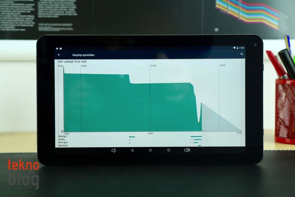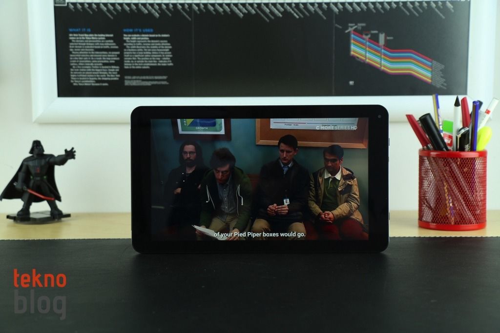 IPS teknolojisine sahip olan ekran doğal olarak geniş görüş açıları sunuyor. Bu da tablet karşısında birden fazla kişinin mümkün olduğunca birbiriyle aynı görüntü kalitesini elde etmesine yardımcı oluyor. Ekran parlaklığı gayet makul görünüyor, optimum görsel deneyim için daha fazlasını aramıyorsunuz. Ekranın renk sıcaklığı ortalamanın biraz üstünde, beyazlara baktığınızda hafif sarıya doğru çaldığını göreceksiniz. Aslında bu da sinematik bir görüntü deneyimi için gayet uygun görünüyor ve Fluo Cinema’ya yakışıyor. Dokunmatik ekranın tepkiselliği ise biraz düşük, bunu da Fluo Cinema’nın sahip olduğu donanım bileşenlerine göre normal karşılamak gerekiyor. Sürükleme hareketlerinde yüzey üstündeki sürtünme açık şekilde hissediliyor.