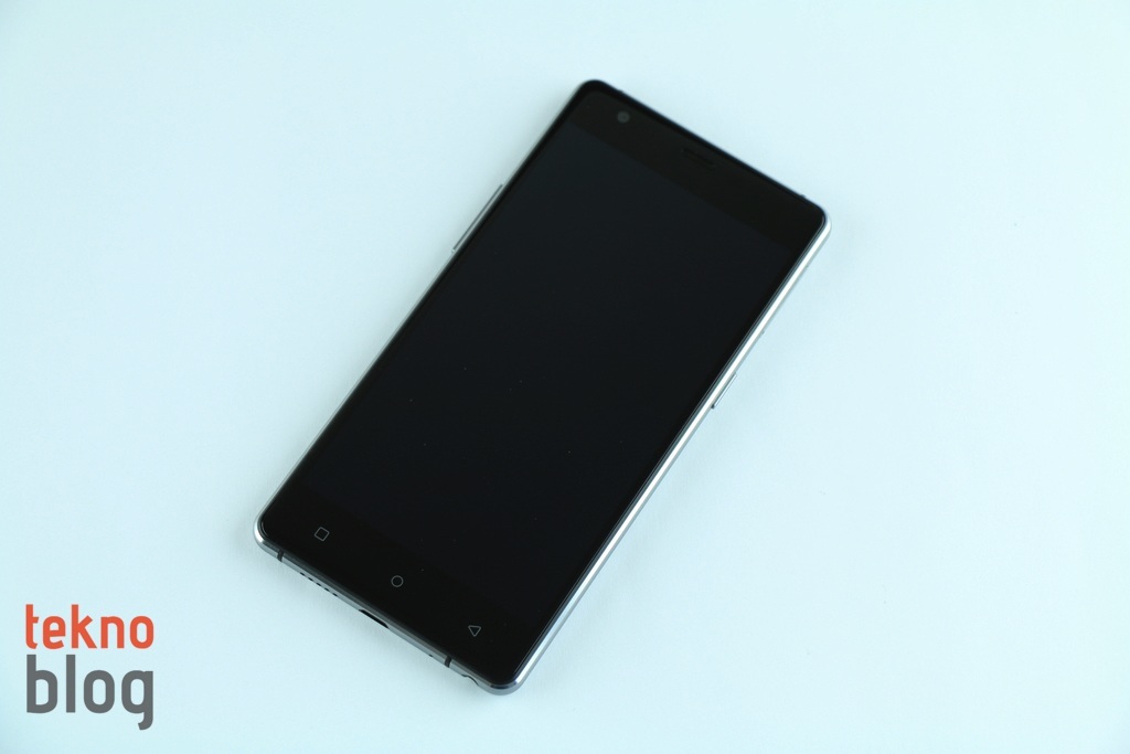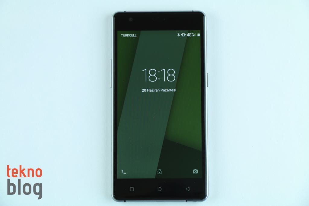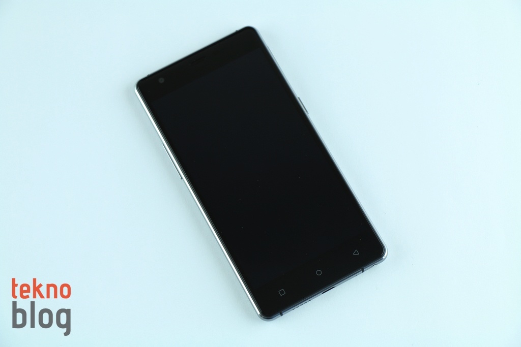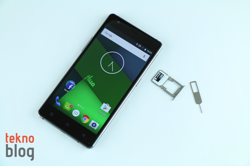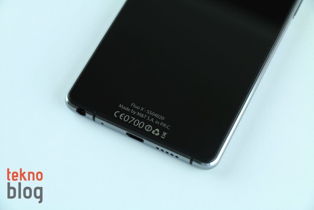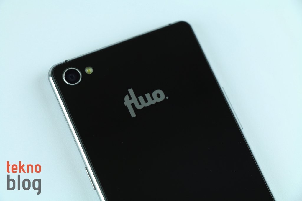 5 inç ekranın üstünde ahize hoparlörü ve 8 megapiksel çözünürlüklü ön kamera yer alıyor. Kenarlara baktığımızda, az önce belirttiğimiz gibi; sol kenarda ses tuşları, sağ kenarda da güç butonu yer alıyor. Tuşlar derin, sert de sayılmaz. Rahat şekilde kullanılabiliyor. Güç butonunun üstünde microSD ve microSIM kart tepsisi bulunuyor. Eğer isterseniz microSD kart yuvasına da ikinci bir SIM kartı (nanoSIM) takabilir, böylelikle Fluo X ile aynı anda iki hattı birden kullanabilirsiniz. Kutudan çıkan sivri uçlu cisim yardımıyla bu yuvayı yerinden çıkarabilirsiniz. Alt kenarda ise hoparlör, microUSB portu, mikrofon ve 3.5 mm. kulaklık jakı mevcut. Üstte de kızıl ötesi portunu görüyoruz. Bu arada kenarları saran metal çerçevenin alt ve üst kenarlarda yer alan bölümlerinde anten şeritleri de dikkat çekiyor.