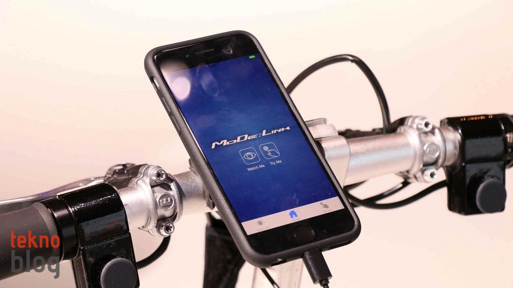 Bisiklet kollarının orta noktasına yerleştirilen iPhone 6 ise Ford’un MoDe:Link olarak adlandırılan uygulamasını çalıştırıyor. Bu uygulama bisikletin kontrol paneli gibi işliyor, ayrıca kalp atım hızını ölçebiliyor, “Ter Yok” olarak adlandırılan moda da geçmeyi sağlayabiliyor. Bu modda güç destekli pedal ünitesi devreye giriyor ve sürücünün pedal çevirme hızını yavaşlatmasına rağmen daha yüksek hızda gidilmesine olanak sağlıyor. Böylelikle bisiklet sürücüsü fazla terlemeden hedeflediği noktaya ulaşabiliyor.