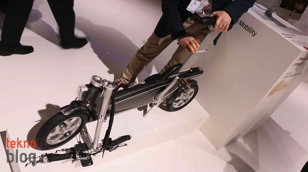 Ford bir yandan sürücüsüz otomobiller için çalışmalar yaparken bir yandan da katlanabilir elektrikli bisikletlerin trafik sıkışıklığına çare olabileceğini düşünüyor. Otomobil şirketi Mobil Dünya Kongresi’nde elektrikli bisikletini gösteriyor. Çevre dostu ve evden işe giderken rahatlıkla kullanılabilecek, kolaylıkla katlanabilir ve toplu taşıma araçlarına da rahatlıkla sığdırabilir MoDe:Me adlı elektrikli bisiklet, kollarının birleştiği yere monte edilen iPhone 6 üzerinde çalışan MoDe:Link uygulaması aracılığıyla navigasyon bilgilerini ve akıllı yol tariflerini alabiliyor, pedal çevirmeye yardımcı olacak ek gücü kullanıma açabiliyor ve hatta Ford markalı otomobillerde bulunan SYNC bilgi sistemlerine entegre edebiliyor.