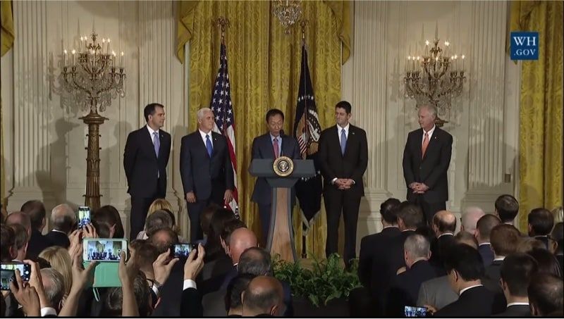 Donald Trump, Foxconn’un bu yatırımında kendisine pay çıkarma konusunda çekingen davranmadı. Trump, Foxconn CEO’su Terry Gou için “Eğer ben seçilmeseydim, 10 milyar dolar harcamayacaktı.” şeklinde konuştu.