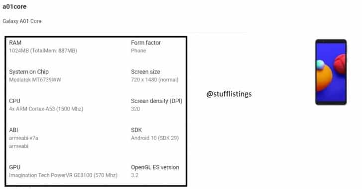 Samsung, gelişmekte olan pazarlar için Galaxy A01 Core adını taşıyan yeni bir telefon hazırlıyor. Çok uygun bir fiyat karşılığında satılması beklenen telefonun özellikleri de yavaş yavaş ortaya çıkıyor.