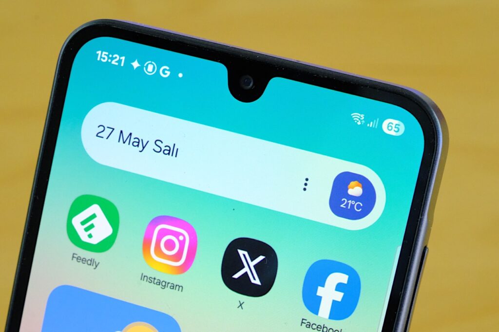 Galaxy A26’nın ekranı, ilk bakışta “eh işte” dedirtse de teknik detaylara indiğinizde tablo biraz değişiyor. 6.7 inçlik Super AMOLED panel, Samsung’un bu alandaki tecrübesini belli bir düzeyde yansıtmayı başarıyor. Full HD+ çözünürlükle gelen ekran, 1080 x 2340 piksel değeriyle yeterli netlik sunuyor. 120Hz yenileme hızı sayesinde menülerde ve uygulama geçişlerinde hissedilir bir akıcılık var. Fakat buradaki küçük pürüz, bu hızın dinamik şekilde ayarlanamaması; ya 60Hz’e sabitliyorsunuz ya da pili hızlıca tüketen 120Hz’e mecbur kalıyorsunuz. Bu da haliyle enerji verimliliği açısından biraz zayıf bir tablo ortaya çıkarıyor. Ne var ki, bu fiyat aralığında AMOLED panel görmek bile hâlâ başlı başına bir avantaj sayılır.