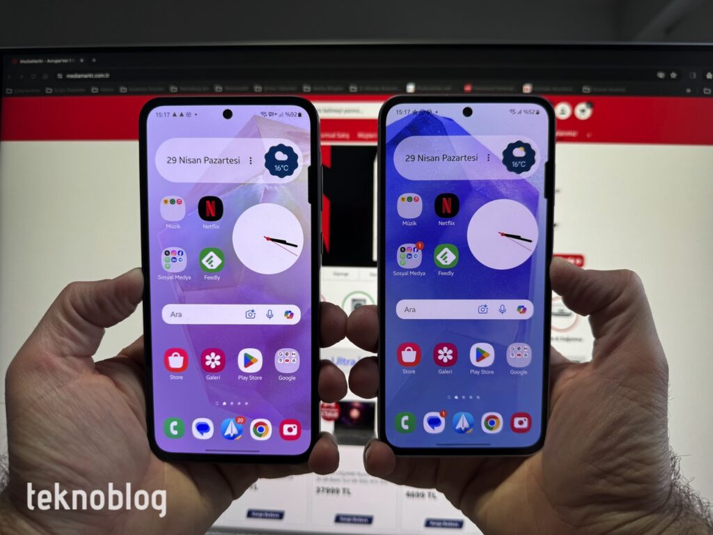 Galaxy A35, 8.2 milimetre ile, A55’in kalınlık değerini taşıyor. Aynı büyüklükte ekrana sahip olmalarına rağmen, A55’in biraz daha ince bir ekran çerçevesine sahip olması, o telefonu yüzey alanı bakımından az daha küçük hâle getiriyor. Kenarlarda plastiğin kullanılmasının sonucu olarak telefon, 209 gram ile çok az daha hafif. Bu telefon da IP67 ile belgelenen suya ve toza dayanıklılık özelliğine sahip. Böylelikle telefonu sağanak yağış altında, havuz veya deniz kenarında gönül rahatlığıyla kullanabilirsiniz.