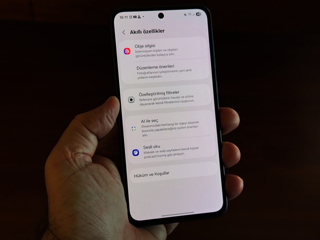 Galaxy A36’da yapay zekâ destekli yazılım özellikleri de dikkat çekiyor. Samsung, bu modele amiral gemilerinde gördüğümüz bazı akıllı araçları dahil etmiş durumda. Örneğin Google’ın yeni “Circle to Search” özelliği, telefonda ilk defa A36 ile A serisine gelmiş. Bu özellik sayesinde ekrandaki herhangi bir içeriğin (görüntü veya metin) üzerine dairesel bir seçim yapıp Google’da arama yapabiliyor, hatta seçilen metin başka dillere anında çevrilebiliyor veya ekranda çalan müzik tanınabiliyor. Galeri’de de yapay zekâ destekli düzenleme araçları mevcut: Nesne Silme (Object Eraser) özelliği bu yıl geliştirildi ve bir fotoğraftan birden fazla istenmeyen objeyi aynı anda seçip kaldırmaya imkân tanıyor. Ayrıca, herhangi bir fotoğrafın tonlarını baz alarak özel filtreler oluşturup bunları başka fotoğraflara uygulayabiliyorsunuz. Bu, yaratıcı Instagram tarzı filtreler oluşturmak isteyenler için eğlenceli bir özellik. One UI 7, bir görüntüyü analiz edip gölgeleri azaltma veya yansımaları kaldırma gibi iyileştirme önerileri sunan Akıllı Öneriler (Edit Suggestions) gibi araçlarla da geliyor. Her ne kadar Galaxy A36, donanım kısıtları nedeniyle amiral gemilerindeki tüm AI özelliklerini, örneğin yüksek RAM gerektiren bazı gelişmiş yapay zekâ işlemlerini desteklemese de , günlük kullanıma yönelik pek çok akıllı fonksiyonu bünyesinde barındırıyor. Bu sayede kullanıcılar, fotoğraf düzenlemekten bilgi aramaya kadar çeşitli alanlarda telefonun sunduğu akıllı asistanlık kabiliyetlerinden faydalanabiliyorlar.