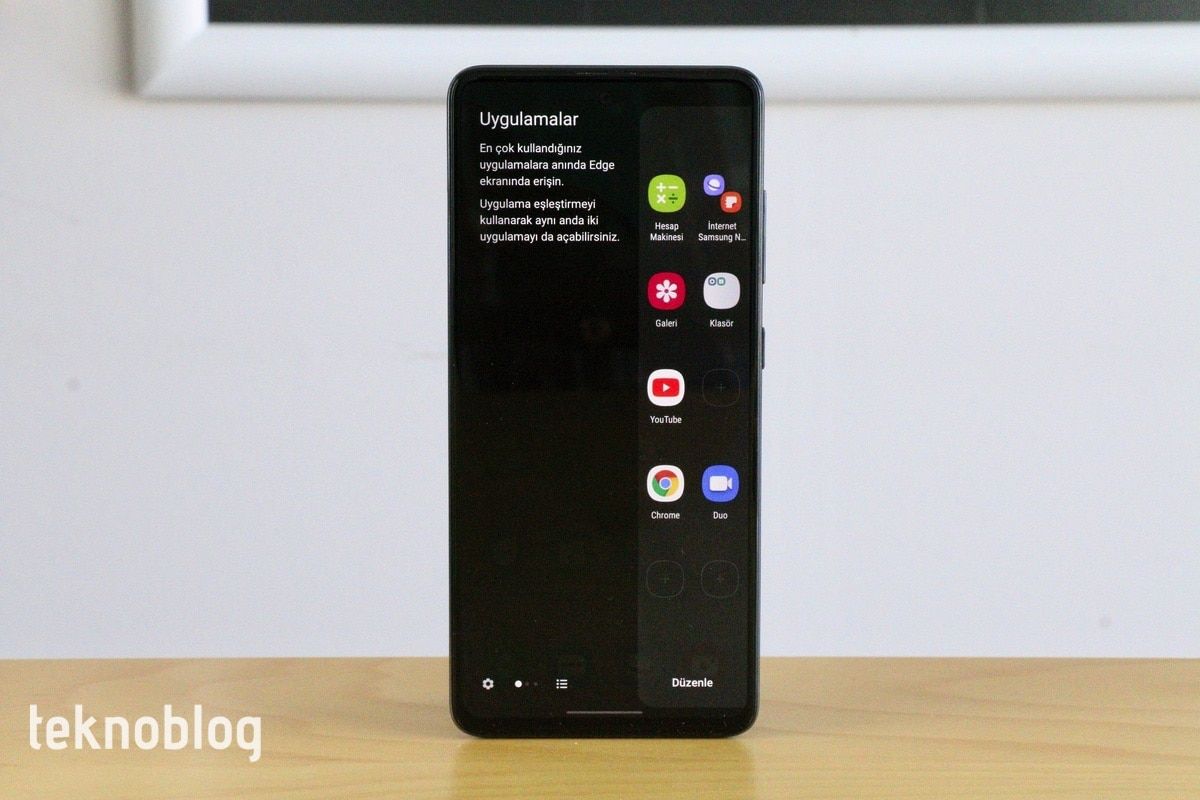 Galaxy A51’de gördüğümüz yeniliklerden bir tanesi de Edge ekranı oluyor. Daha önce kavisli ekrana sahip Samsung telefonlarında gördüğümüz ve pek de kullanmadığımız bileşen, şimdi Galaxy A51 gibi düz ekranlı telefonlarda da var. Bu özellik sayesinde, ekranın kolayınıza gelen bir köşesine çekmece yerleştirebilir, favori kişilerinize veya uygulamalarınıza hızlı şekilde erişebilirsiniz. Öte yandan gelen bildirimlerle ekranın kenarlarının istediğiniz renkte aydınlatılması da hoşunuza gidecek ve kullanabileceğiniz bir özellik sayılabilir.