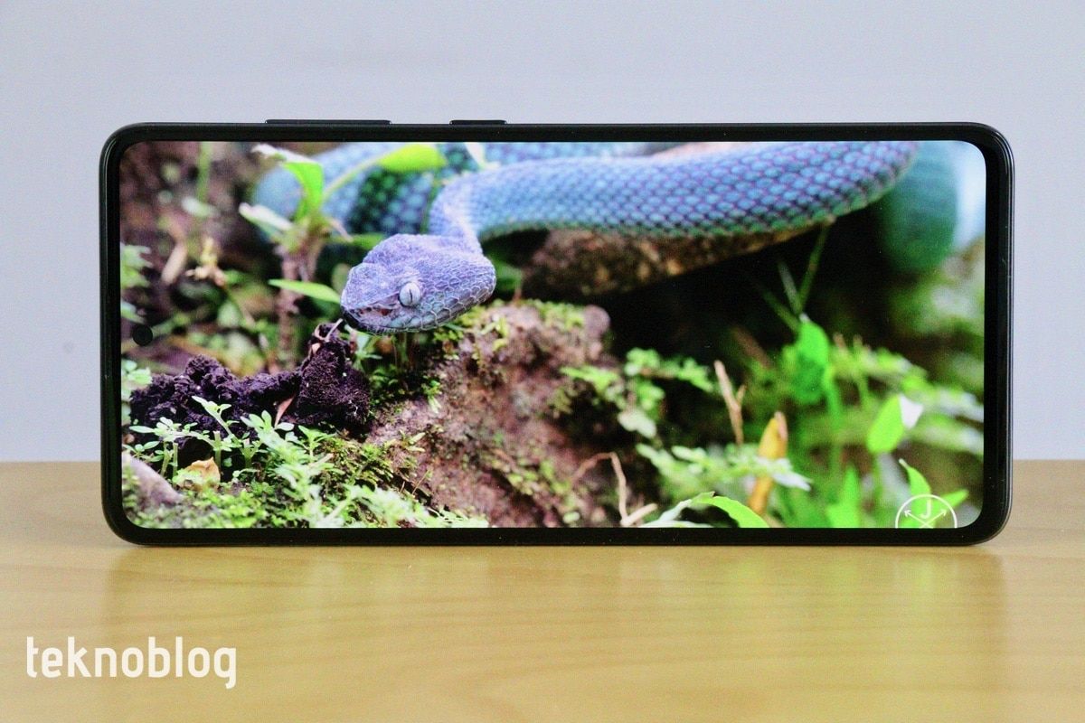 Galaxy A51, 6.5 inç köşeden köşeye uzunluğa sahip bir ekran barındırıyor. Ekran çözünürlüğü 1080 x 2400. 20:9 görüntü oranlı bu ekran 405 ppi ile fazlasıyla yeterli bir piksel yoğunluğu sunuyor. Metin ve grafikler gayet net ve keskin görünüyor. Super AMOLED ekran kullanılmış. Ekranın renk canlılığı yüksek, parlaklık da optimum seviyede. Görüş açıları da geniş. Dışarıda kullanımda da herhangi bir sıkıntı söz konusu değil. YouTube’da veya Netflix’te video izlemek için de bu ekranın yeterli olduğunu söyleyebiliriz. İnce ve uzun yapısı, özellikle web sitelerinde gezinirken ekranda daha fazla yazı veya metni görmeyi sağlıyor. Benzer durum e-kitap veya PDF dokümanlarını görüntülerken de geçerli. Kısacası, Galaxy A51’in ekranı fazlasıyla yeterli bir görsel deneyim sunuyor.