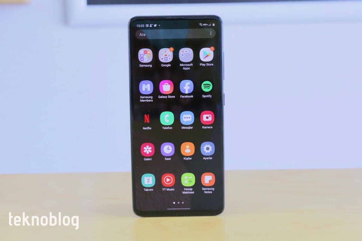 Galaxy A51’de de çeşitli Samsung uygulamaları yüklü olarak geliyor. Bazı uygulamaların yüklenmesi de isteğe bağlı. Google’ın klasik Android uygulamaları ve çeşitli Microsoft uygulamalarını da ilk kurulumdan sonra yüklü olarak görüyoruz. Google Play Store’un yanı sıra Samsung’un uygulama ve içerik mağazası Galaxy Store’dan da uygulama veya oyun indirebilirsiniz.