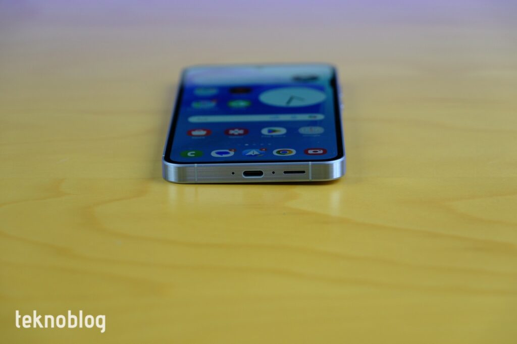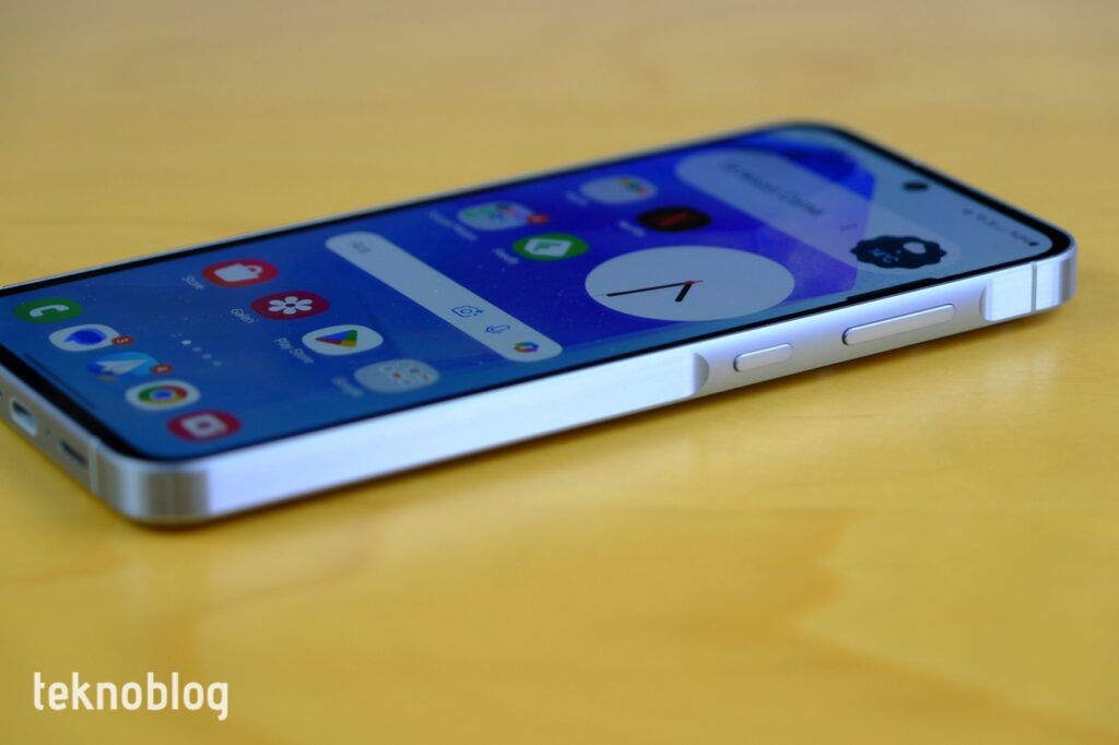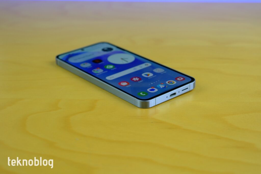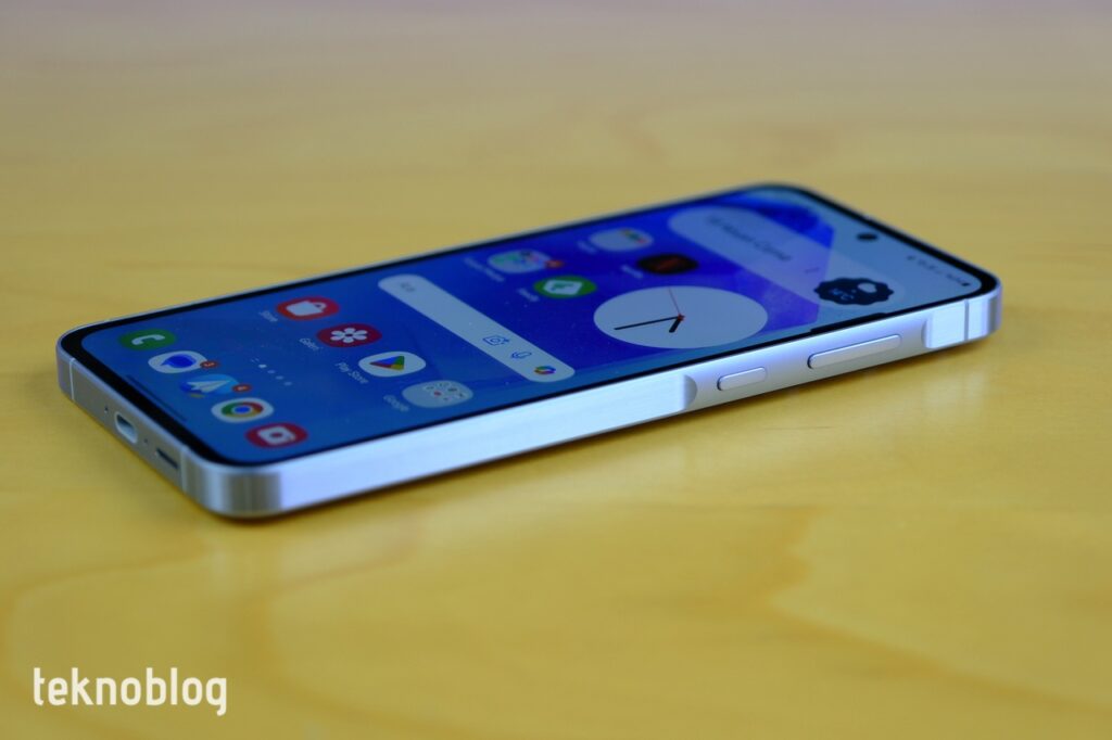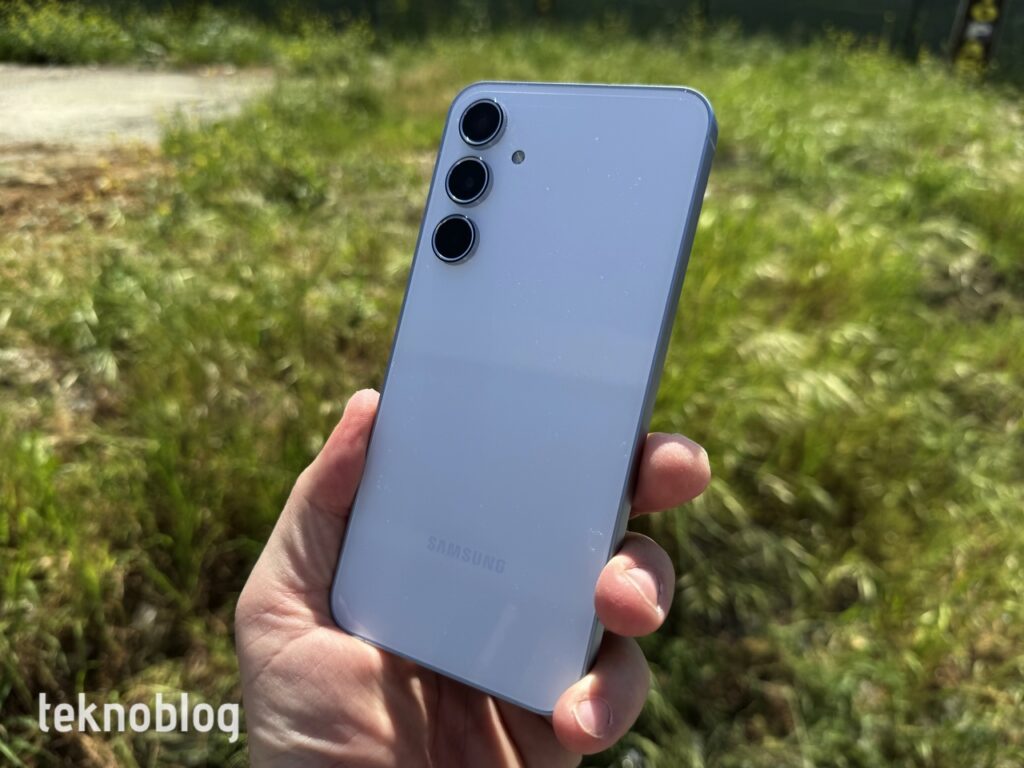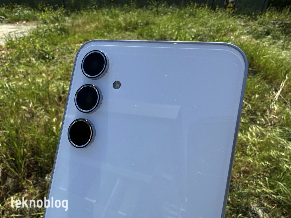 Düz metal kenar, sağ kenarda bulunan ses ve güç tuşlarının olduğu yerde dışa doğru hafif kavis yapan bir tasarıma geçiş yapıyor. İlk kez Galaxy A25’te gördüğümüz bu tasarım daha üst seviye seçeneklerde de deva ettiriliyor. Alt kenarda USB-C portu, mikrofonlar ve hoparlör var. Hoparlör tasarımı, Galaxy S24 serisinde gördüğümüz türden. Üst kenarda bir mikrofon daha var. Ayrıca nano SIM ve microSD kart tepsisi de bu kenarda yer alıyor. microSD kart yuvasına ikinci bir SIM kartı daha takarak aynı anda iki fiziksel hattı kullanmanız mümkün oluyor.