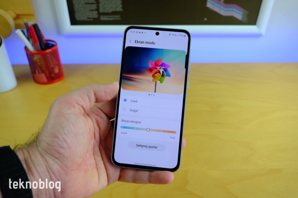 Super AMOLED ekran derin siyahları ve yüksek kontrastı sayesinde canlı ve gerçekçi renkler sunuyor. Ekran ayarları içinden renk modunu veya sıcaklığını istediğiniz gibi değiştirebilirsiniz. Dışarıda, parlak Güneş ışığı altında da ekranın iyi bir görüş sunduğunu görüyoruz. Görüş açıları da iyi. Ekranın genişliği de boyuna göre iyi biçimde oranlanmış. Sonuç olarak dikey biçimde sosyal medya uygulamalarını kullanma, web’de gezinme gibi işleri rahatlıkla yerine getirebiliyorsunuz. Aynı zamanda genellikle 16:9 formatında olan videoları da kenarlarda çok kalın çubuklar olmadan izleyebilirsiniz. YouTube, Netflix, Amazon Prime Video gibi popüler içerik platformlarında HDR içerikler destekleniyor.