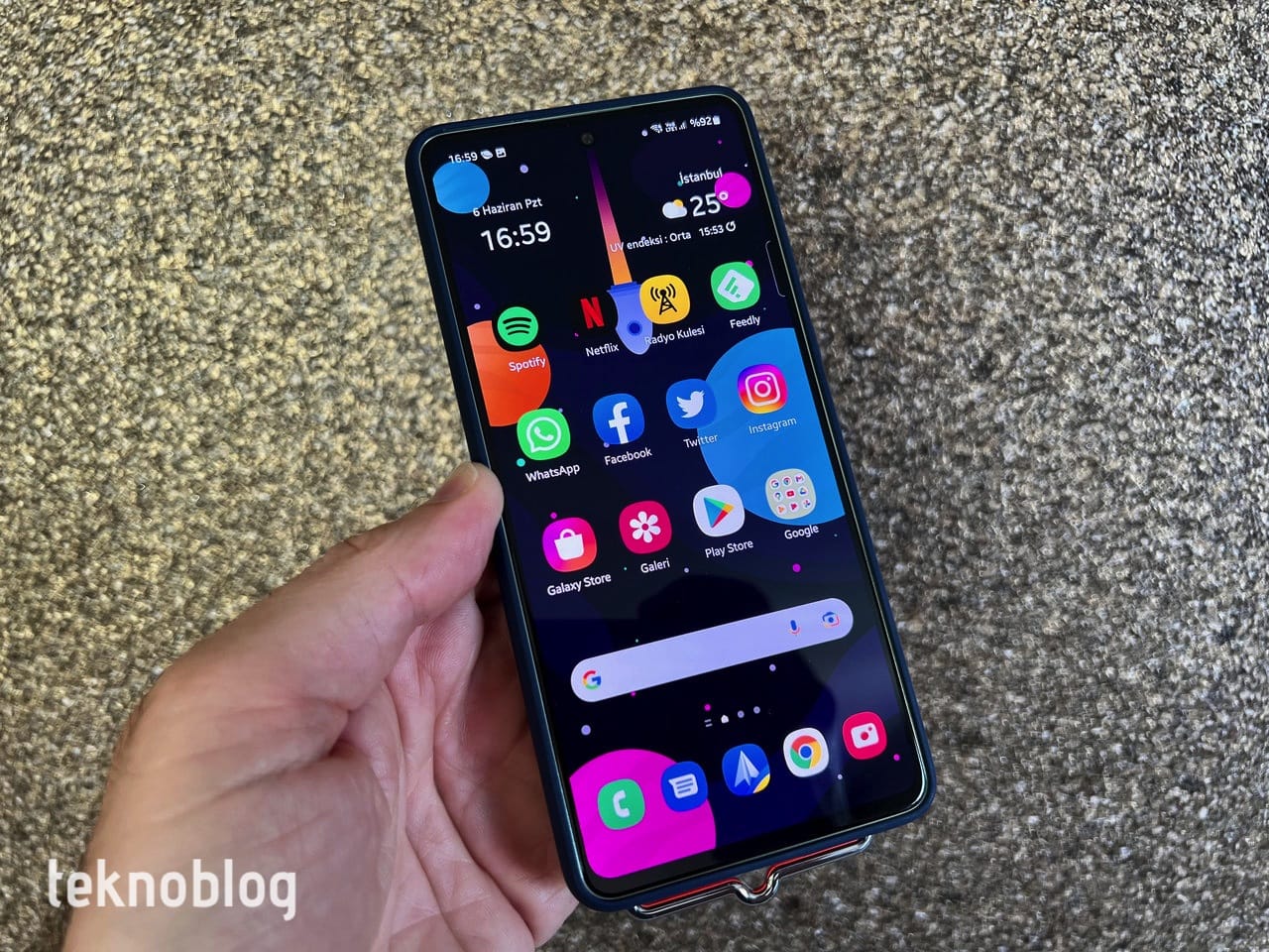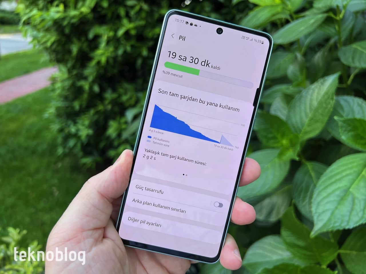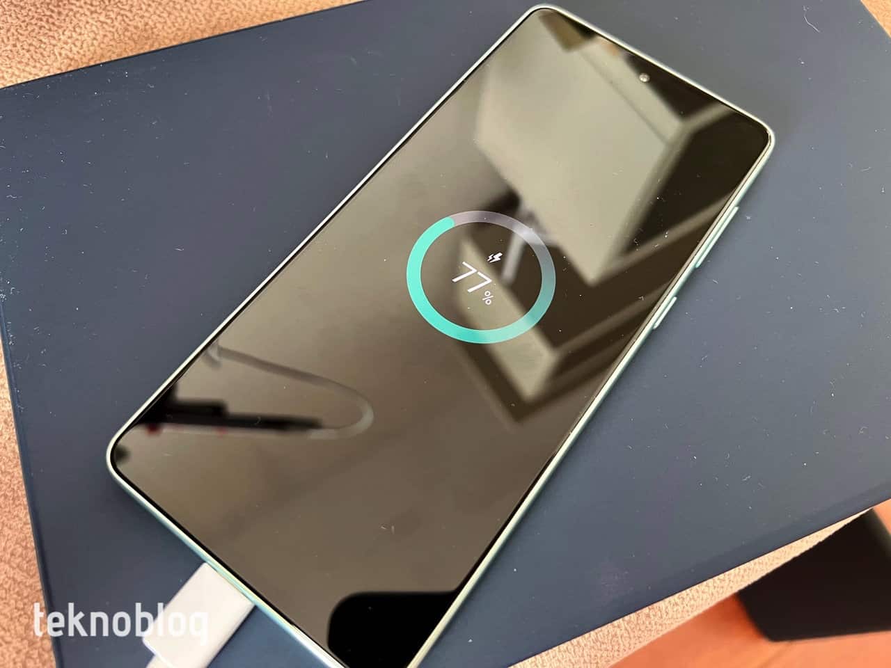 Bizim elimizde Galaxy A72’den kalma 25W güç adaptörü ve kablo var. Bu ikiliyle telefonun pilini, telefon kapalı durumdayken 32 dakika gibi bir sürede yüzde 50 oranında doldurmayı başardık. Yaklaşık 75 dakika gibi bir sürede ise telefonun pili tamamen doldu. Bunlar oldukça iyi değerler ve şarj konusunda elinizi rahatlatacaktır. Tabii ki, elinizde doğru aksesuarların olması durumunda.