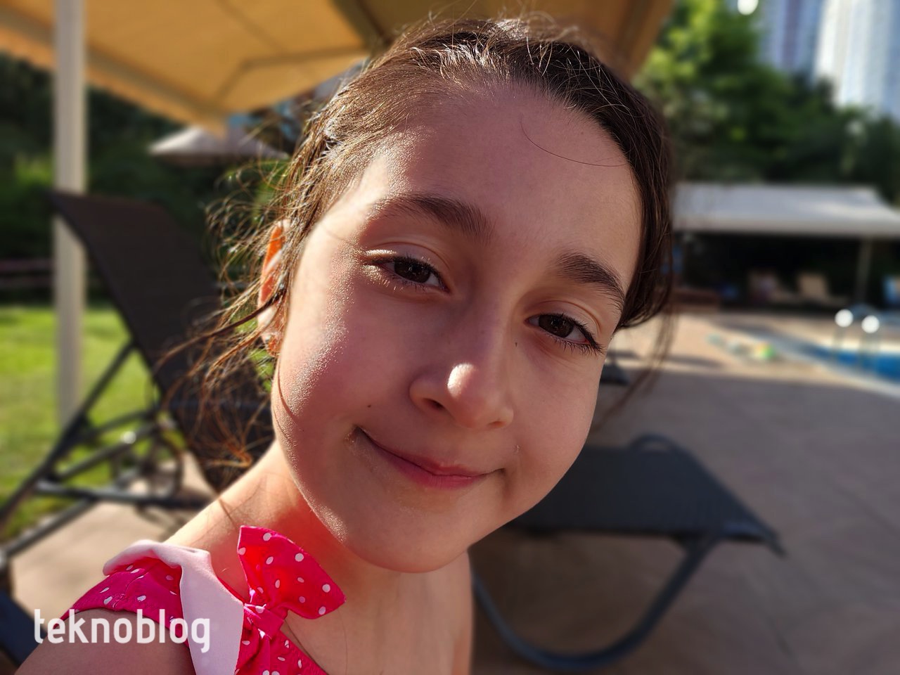 Ön tarafta 32 megapiksel selfie kamera var. Bu kamera f/2.2 diyafram değerine sahip. Farklı ışık koşulları altında memnun edici fotoğraflar çekebilirsiniz. Netlik iyi seviyede, ışık yeterli olduğunda da memnun edici bir parlaklık var. Renkler hafif de olsa solgun görünüyor. Düşük ışıkta parlaklık ve renkler kabul edilebilir seviyelerde, ancak gürültü etkisi dikkat çekiyor. Her ne olursa olsun, bu kamera ile çekeceğiniz fotoğraflar çoğu durumda işinizi görecektir.