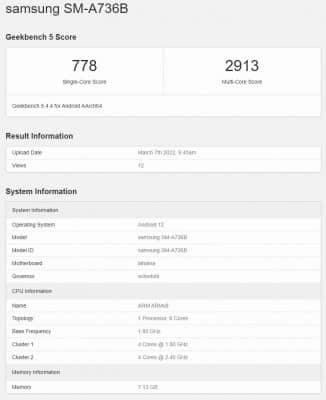 Benchmark testine göre, A73’te bu işlemciye 8 GB RAM eşlik ediyor. Akıllı telefonda Android 12’yi One UI 4.1 kullanıcı arayüzünün tamamlaması bekleniyor.