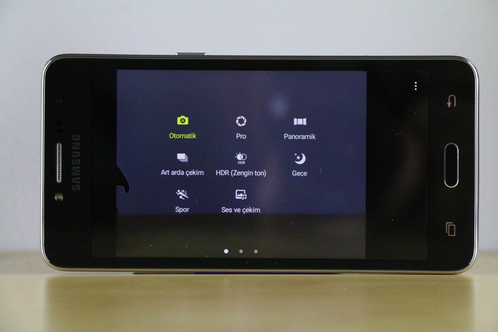 Galaxy Grand Prime+’ın kamera uygulaması, Samsung’un 2016’nın ikinci yarısında piyasaya sürdüğü telefonlarda görülen arayüz yeniliklerini de barındırıyor. Uygulamada otomatik, Pro, panoramik, art arda çekim, HDR ve gece gibi farklı sahne modları bulunuyor.