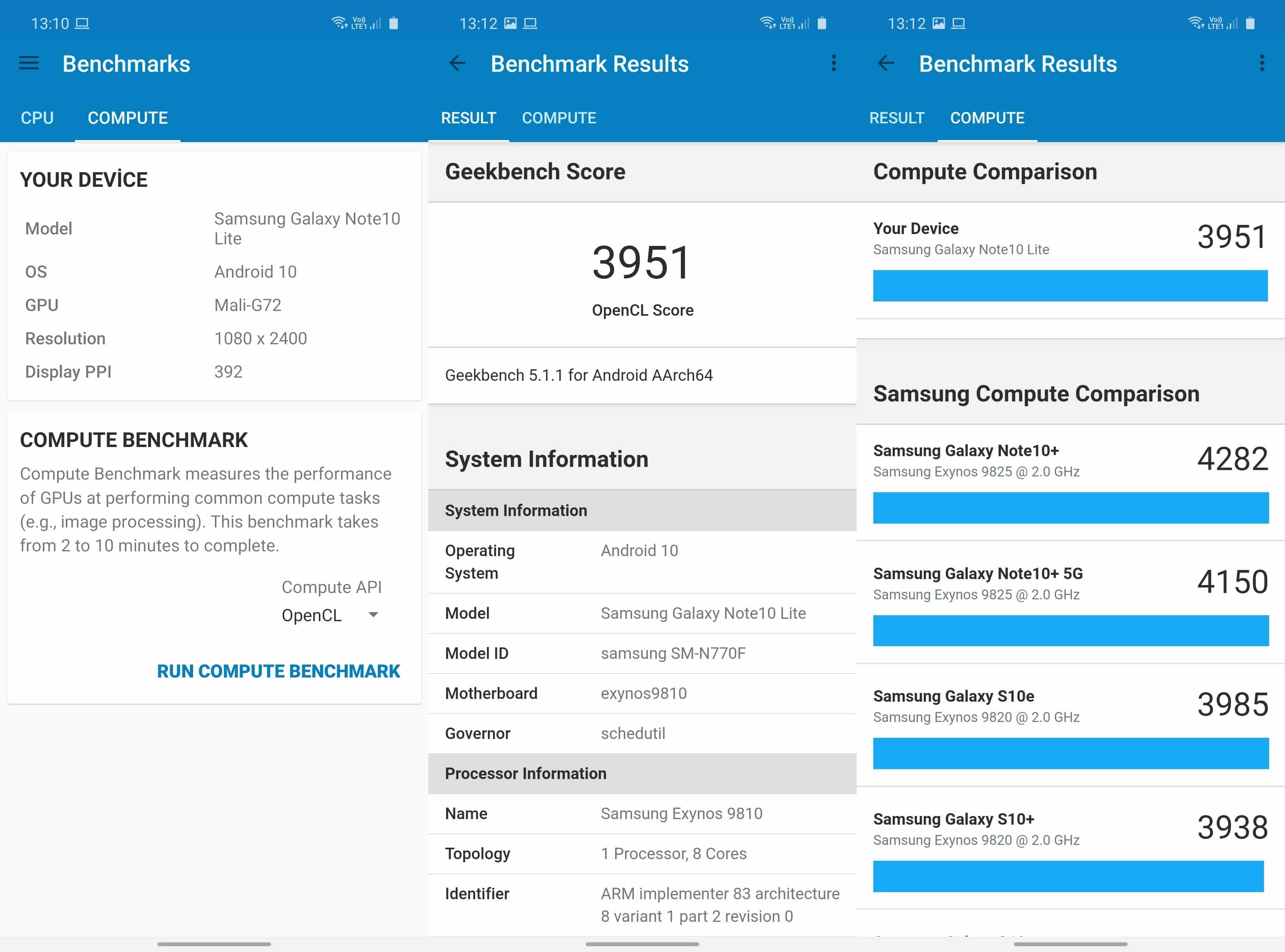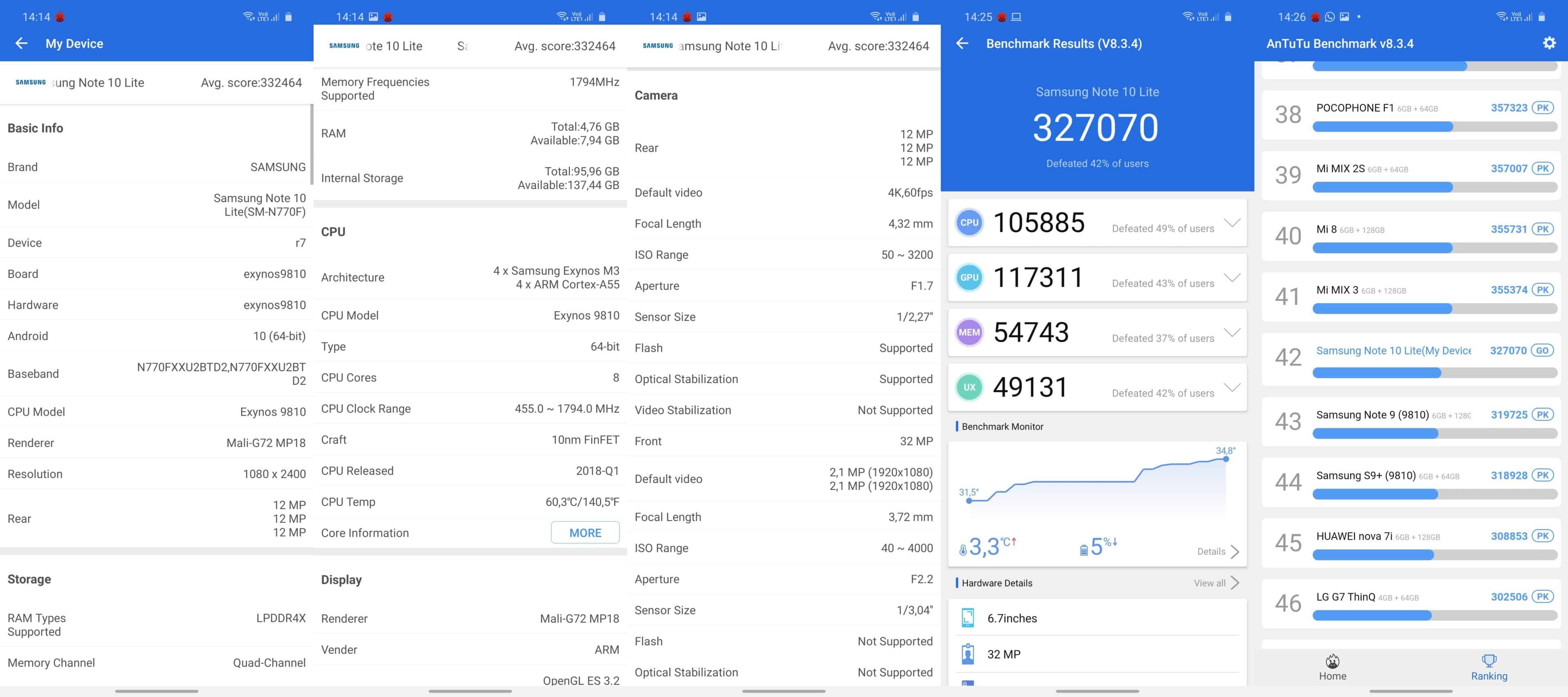 Benchmark testlerindeki sonuçlar da Galaxy Note 10 Lite’ın 2018 yılında çıkmış olan Galaxy Note 9 ve S9 gibi telefonlarla aynı seviyede puanlar elde ettiğini gösteriyor. Kağıt üstünde olan durum benchmark testlerine de yansıyor, yani Galaxy S10 Lite Note 10 Lite’dan daha hızlı bir telefon. Yine de oyun konusunda Galaxy Note 10 Lite da makul grafik kalitesi ve hızıyla iyi bir deneyim sunacaktır.