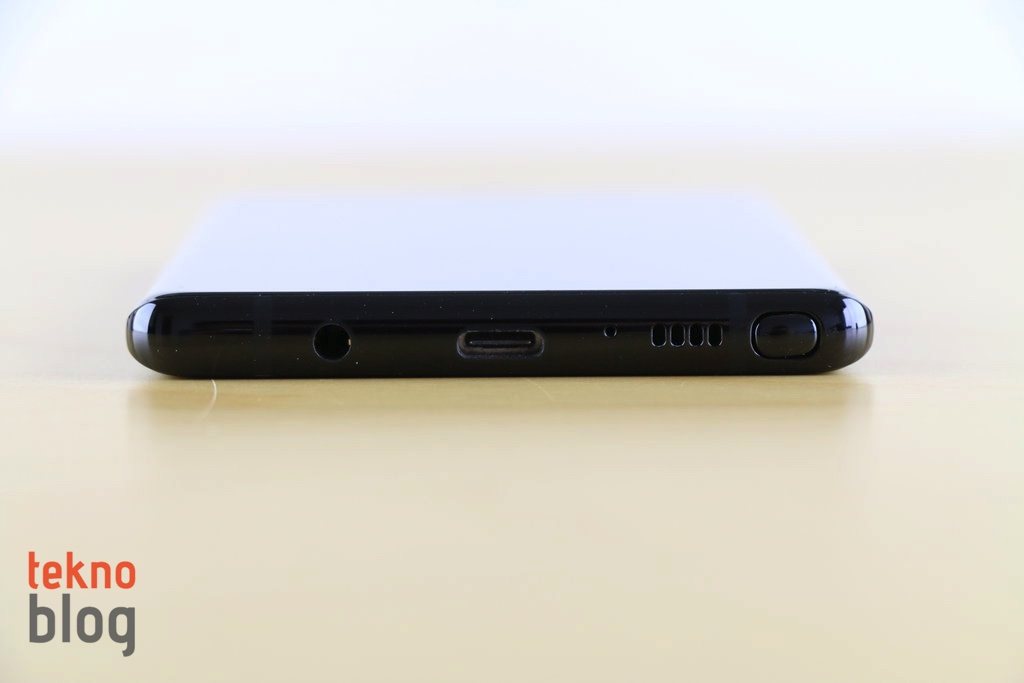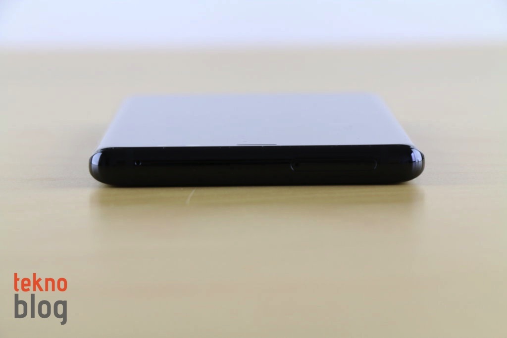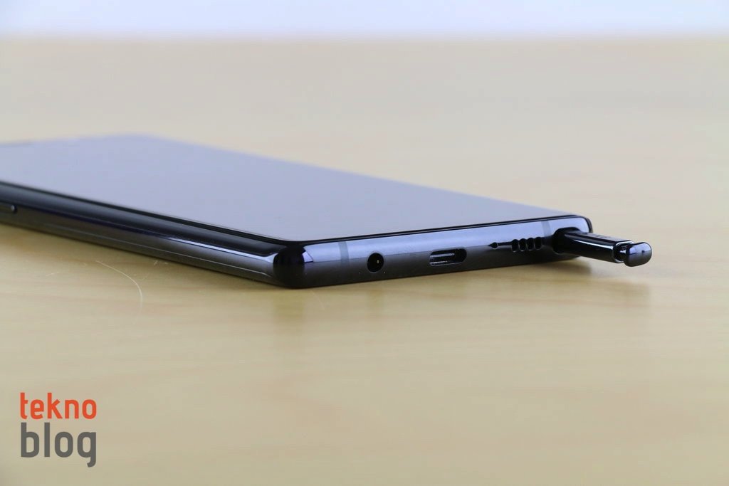 Alt kenarda USB-C portu, 3.5 mm. kulaklık jakı, mikrofon ve hoparlör bulunuyor. Ayrıca S Pen yuvası da burada bulunuyor. Galaxy Note 5’te S Pen’i yuvasına ters şekilde sokmak mümkün oluyordu, ancak bu durum kalem çıkarma mekanizmasını bozuyordu. Neyse ki Samsung, Note 8’de böyle bir durumun olmasına izin vermiyor. Üst kenarda ikinci mikrofonu, aynı zamanda nanoSIM ve microSD kart tepsisini görüyoruz.