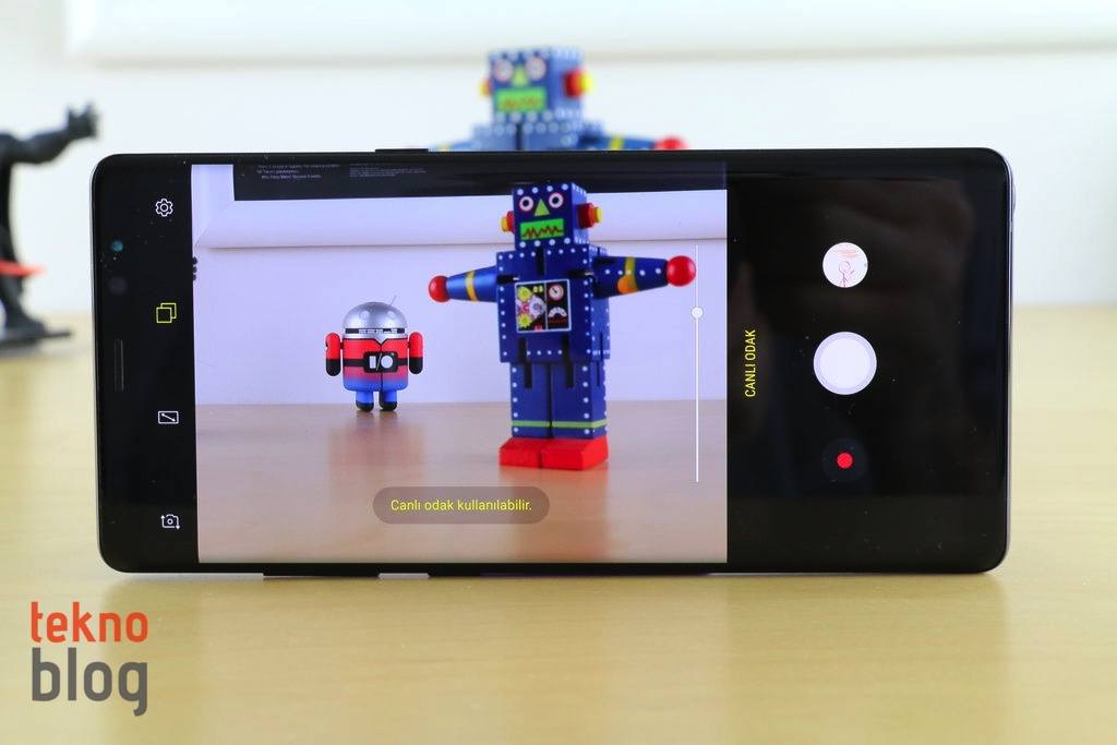 İkinci kameranın gelmesi hem iki kat optik yakınlaştırma yapmaya olanak sağlıyor, hem de tıpkı iPhone 7 Plus ve 8 Plus’ta olduğu gibi, arkası bulanıklaştırılmış portre fotoğraflar çekmeye olanak sağlıyor. Samsung’un Canlı Odak olarak adlandırdığı bu özellik etkinleştirildiğinde, bir fotoğrafın hem geniş açılı hem de yakınlaştırılmış fotoğrafının çekilmesi sağlanıyor. Yakınlaştırılmış fotoğrafta nesne ön planda, net bir şekilde gösterilirken arka plan bulanıklaştırılıyor. Çekim yaptıktan sonra fotoğraf üzerinde değişiklik yapabilir, geniş açılı hâlini görebilir veya arka plan bulanıklaştırma seviyesini ayarlayabilirsiniz. Yakınlaştırma yapıldığında sınır noktalarında ufak tefek kusurlar görünse de, Samsung’un Canlı Odak modunun gayet iyi çalıştığını söyleyebiliriz.