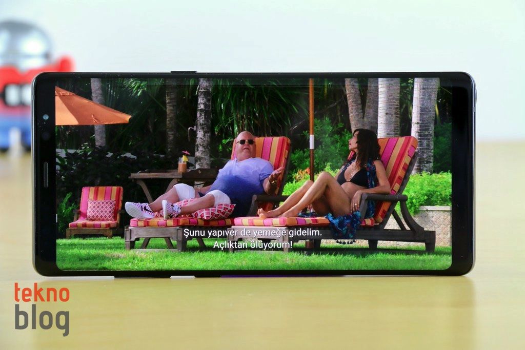 YouTube ve Netflix gibi, yüksek dinamik aralığı desteği sunan videoları Galaxy Note 8’in büyük ekranında rahatlıkla izleniyor. Böylelikle daha geniş renk aralıklı, gerçeğe çok yakın renklerin ve görüntülerin zevki yaşanıyor. Üstelik bu gibi video servislerinde içerik Sonsuz Ekranın tamamına yayılabiliyor. Her ne kadar görüntünün her kenarından biraz kırpma olsa da, bir videoyu her iki kenarında siyah renkli çubuklar olmadan izleyebilirsiniz.