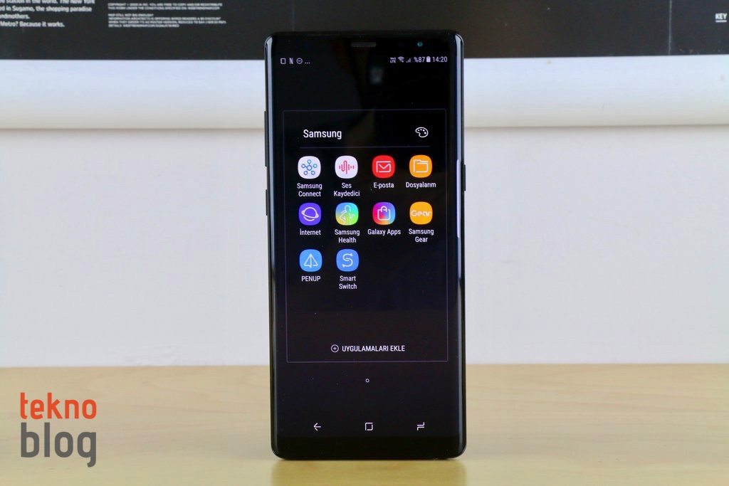 Uygulamalar demişken; Samsung, Google ve Microsoft’un çeşitli uygulamaları yüklü olarak sunuluyor. Uygulamaları ister Google Play’den indirebilir, isterseniz Samsung’un özel uygulama mağazası olan Galaxy Apps’e de göz atabilirsiniz. Apple’ın iPhone’larında bulunan 3D Touch tabanlı Hızlı Aksiyonlar menüsüne benzer bir menü Samsung Experience arayüzünde de mevcut. Uygulama ikonlarına basılı tutup bekleterek menüyü açabilir, buradan destekleyen uygulamalarda uyutma imkanını kullanabilir; uygulamaları cihazdan kaldırabilir, ana sayfaya ekleyebilirsiniz.