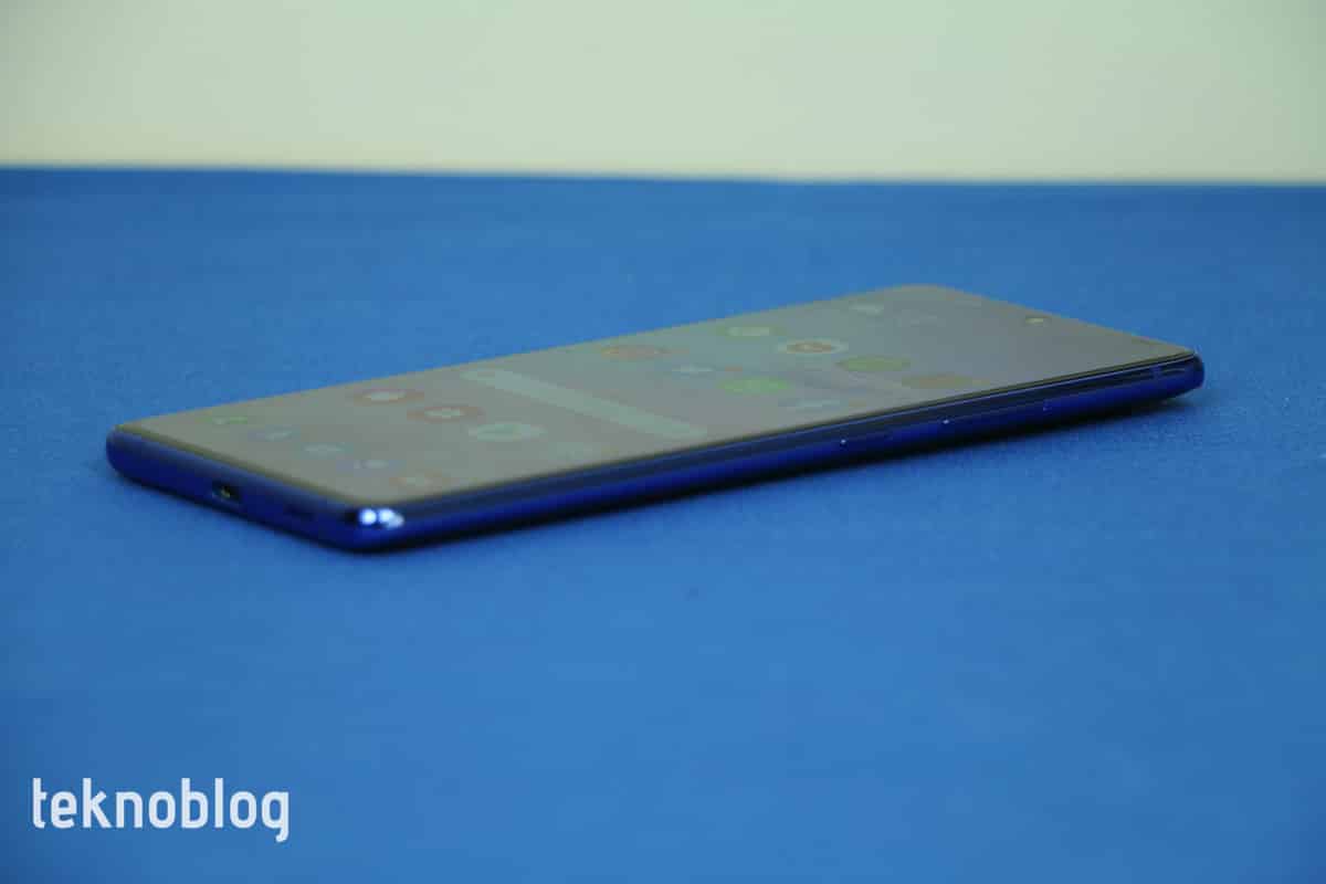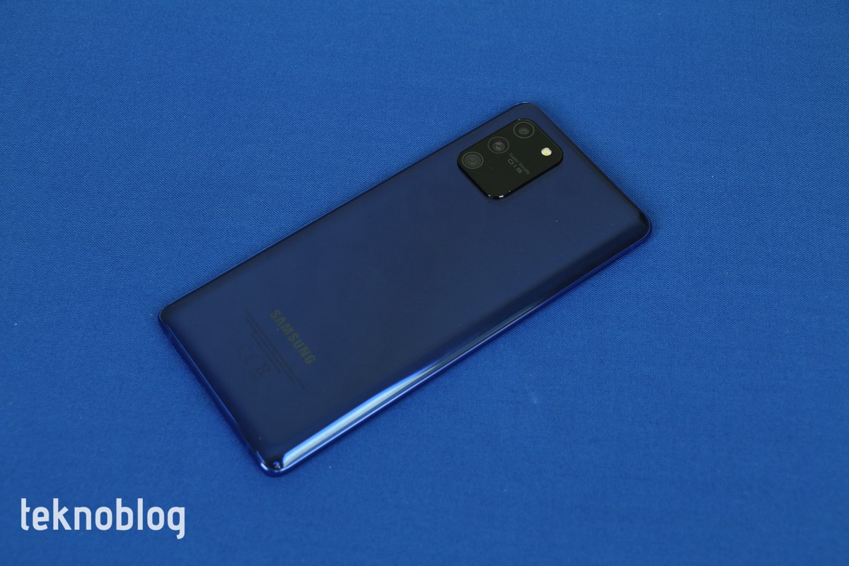 S10 Lite ve A71’i yan yana getirip önden baktığınızda iki telefonu birbirinden ayırmanız zor. Farklılıklar arka tarafta gizli. Galaxy A71’in prizma arka tasarımı S10 Lite’da yerini düz bir tasarıma bırakıyor. Işığın yansıması daha düz bir görüntü oluşturuyor. Sol üst köşedeki dörtlü kamera yerleşimi ise daha şık ve telefona biraz daha amiral gemisi telefon görünümü kazandırıyor. Plastikten yapılmış arka yüz parmak izine karşı epey cömert, kolay şekilde parmak izine boğuluyor. Bu nedenle ara sıra bir mendille temizlemekte fayda var. Bununla birlikte çizilmelere karşı da dayanıklı olduğunu söyleyebiliriz. Elimizdeki koyu mavi renk de gayet şık duruyor.