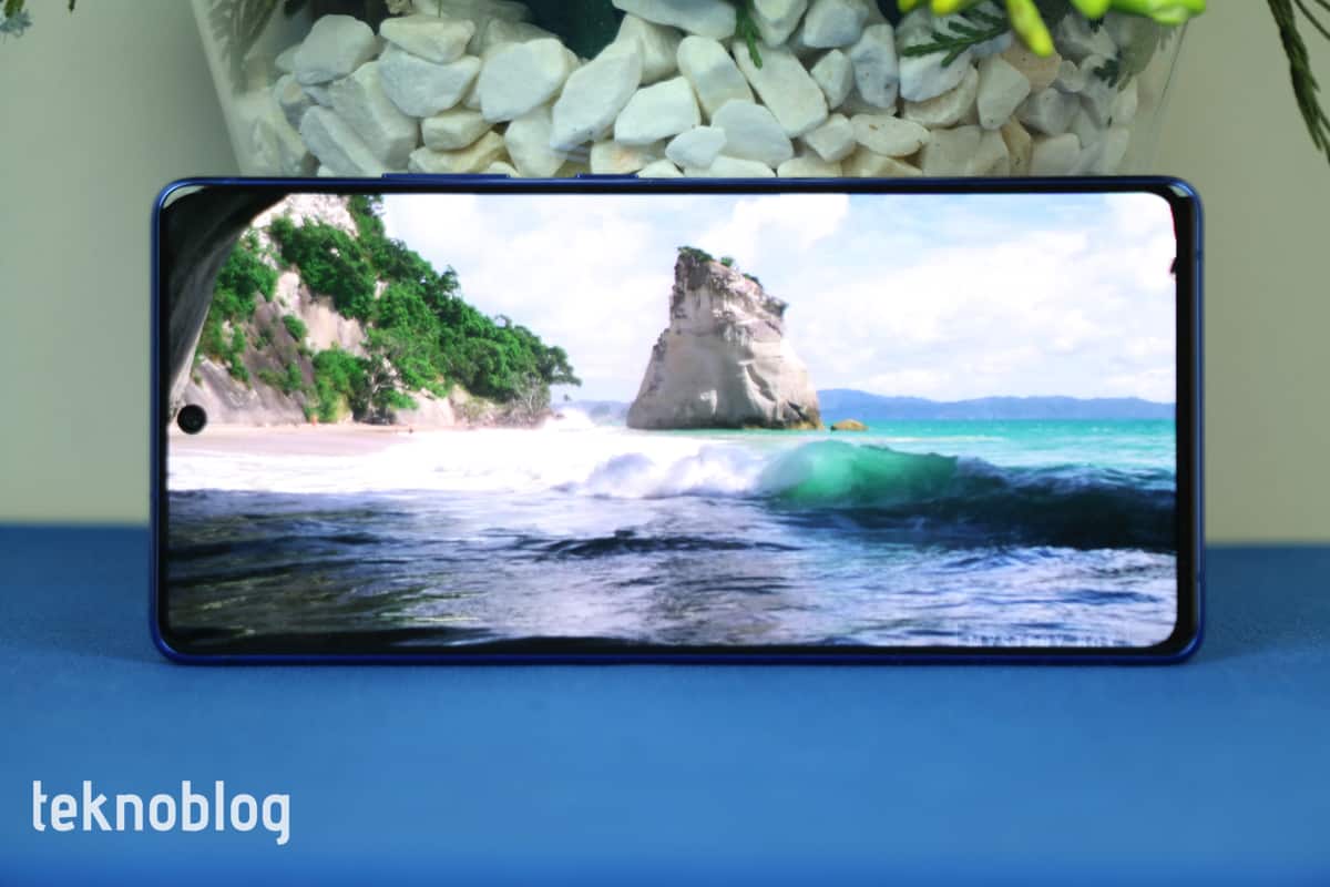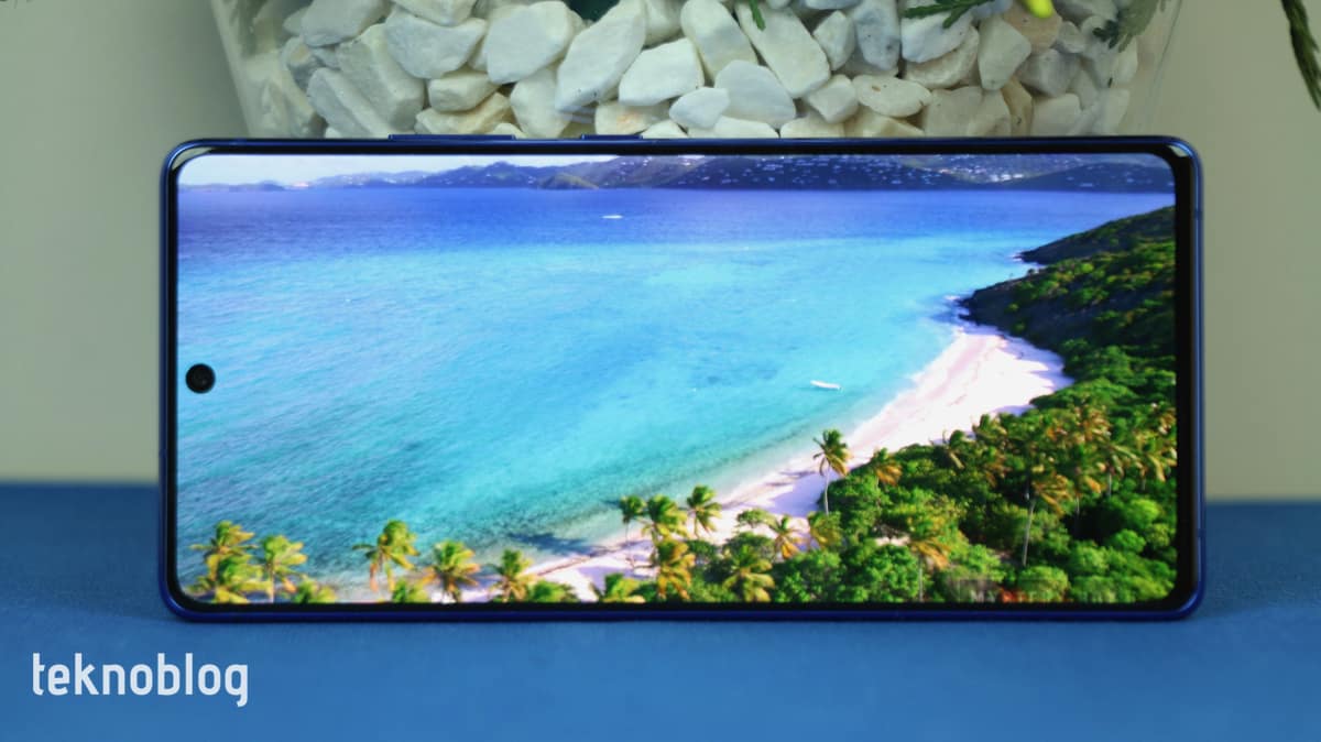 Ön taraf ise sağlam camla kaplı. Telefon kutusundan ekran koruyucu film yapıştırılmış şekilde çıkıyor. S10 Lite’ı deneyimlediğimiz süre boyunca bu şekilde kullandık ve bu durum ekran kalitesinde ve görsel deneyimde herhangi bir sıkıntıya neden olmadı. Üstelik bu koruyucu ekran filmi daha önce deneyimlediğimiz diğer Samsung telefonlarınınkine göre daha sağlam göründü.