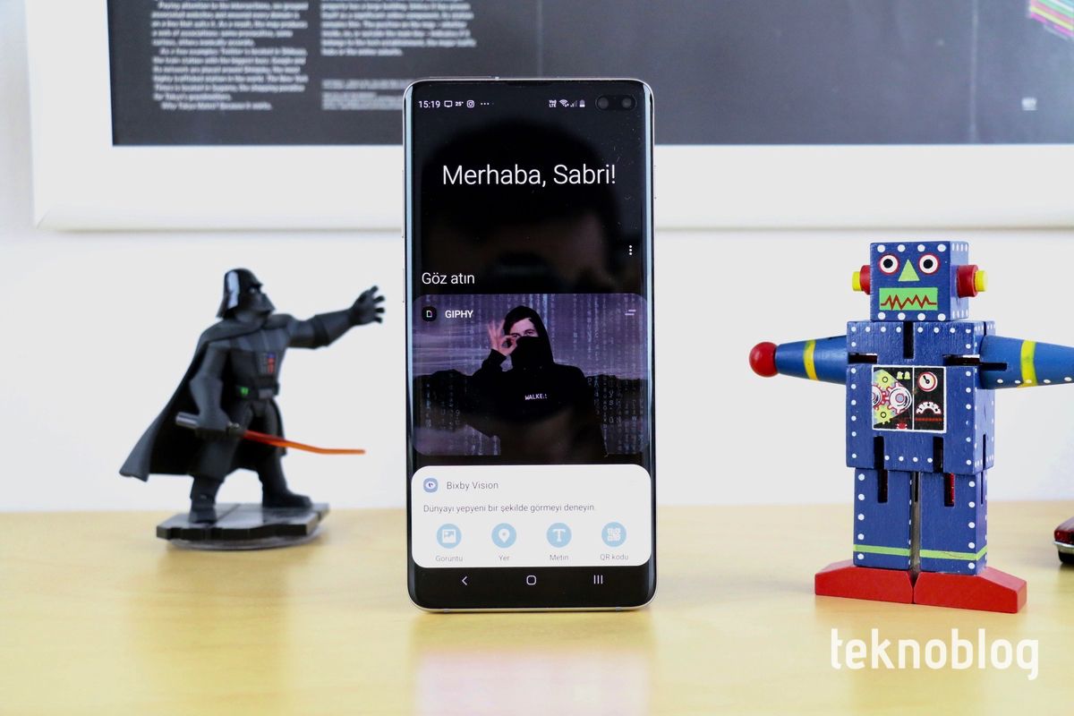 Uygulama çekmecesini sevenler, telefonu kurup kullanmaya başladıklarında bunu karşılarında bulacaktır. Eğer isterseniz sadece Ana ekran panellerinin bulunduğu stili de tercih edebilirsiniz. Bixby Home portalı, Ana ekranın solundaki panelde kullanıcıları bekliyor. Bixby Home, farklı uygulamalardan verileri, bilgileri ve haberleri göstermesiyle kullanışlı bir bölüm gibi görünüyor. Ne var ki, S10+’ı deneyimlediğimiz süre boyunca elimizin Bixby Home’a fazla gitmediğini söylememiz gerekiyor.