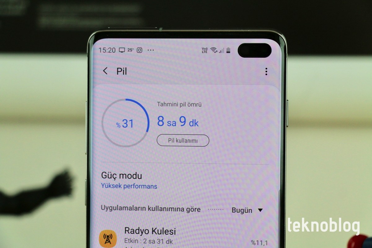 Galaxy S10+ ince ve nispeten küçük gövdesine rağmen 4100 mAh gibi ortalamanın üstü kapasiteye sahip bir pili barındırmasını biliyor. Bu pil, Galaxy S10+’ın normal yoğunluklu bir kullanımda bir günü rahatlıkla çıkarmasına izin veriyor. Çoğu zaman tek bir şarj ile 1.5-2 gün arasında çalışma imkanı bulduğumuzu söylememiz gerekiyor. Eğer oyun oynama veya video izleme gibi işleri sıklıkla gerçekleştiriyorsanız, bu yoğunluğa rağmen Galaxy S10+’ın sabahtan akşama bir günü tek bir şarjla çıkarmanıza izin vereceğini söyleyebiliriz.