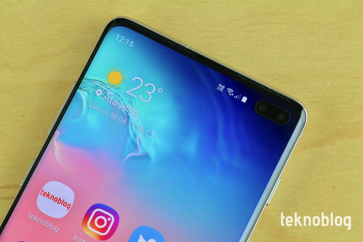 Samsung, çentikten uzun zaman boyunca uzak durmuştu. Bu yıla kadar gördüğümüz amiral gemisi Samsung telefonlarında çentiğin var olmamasına karşın ön yüzün büyük bölümüne yayılmış ekranlar görürdük. Ancak Samsung da artık zamanın gereksinimlerine karşı koyamıyor. S10 ailesinin tüm üyelerinde delikli ekranlar görüyoruz. Galaxy S10+’ta çift ön kamera olduğu için, sağ üst köşedeki kamera deliği biraz daha geniş. Samsung, sağ üst köşeye doğru kararan duvar kağıtlarıyla deliği gizlemeyi başarıyor. Üstelik kamera deliğiyle bütünleşen birçok farklı duvar kağıdı seçeneği de göze hoş gelen görünüm oluşturuyor.