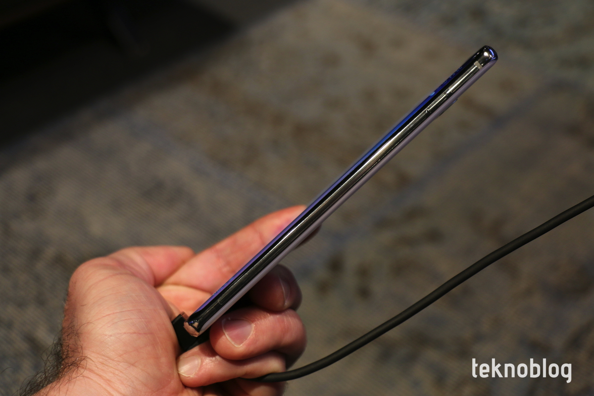 Samsung bu ekranı Infinity-O olarak adlandırıyor. Türkçesiyle Sonsuz O… Ekranın sağ üst köşesinde iki adet kamera için açılmış bir delik var. Bu kamera deliği ekrandaki renk tonları koyu olduğunda çok fark edilmiyor. Tam ekranda video izlerken ise köşede kaldığı için görüntüde önemli bir kayıp yaratmıyor. Sanki kamera deliğinin olduğu yerde, TV kanallarının yerleştirdiğine benzer biçimde bir logo varmış gibi düşünebilirsiniz. Sadece İnternet gibi, beyaz rengin yoğun olduğu uygulamalarda ekran deliği dikkat çekici oluyor. Ancak bunlarda da dikkat genellikle ekranın orta kısmında olduğu için, deliğin büyük bir rahatsızlık yarattığını söyleyemeyiz.