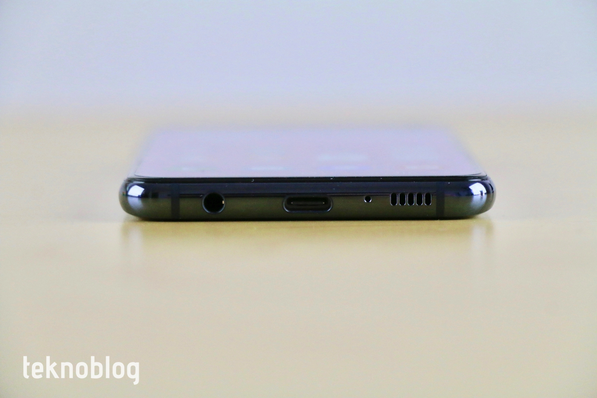 Galaxy S10e’nin alt kenarında USB-C portu mevcut. 3.5mm kulaklık jakını görmek de birçok kullanıcıyı memnun edecektir. Ayrıca mikrofon ve hoparlör de alt kenarda mevcut. Alt kenardakine ek olarak, ahize hoparlörü ızgarasına yerleştirilmiş ikinci bir hoparlör daha bulunuyor. Ses konusuna bir sonraki bölümde daha detaylı biçimde değineceğiz. Üst kenarda ikinci mikrofon ile nanoSIM ve microSD kart tepsisi bulunuyor. Sol kenarda ses tuşları ve meşhur Bixby tuşu yer alıyor. Sağ kenarda ise parmak izi okuyuculu güç butonunu görüyoruz. Daha önce Samsung, parmak izi okuyucusunu arkaya yerleştirmeyi tercih ediyordu. Hatta ilk seçimleri çok tartışılmıştı. Galaxy S10 ve S10+ modellerinde ekran içi parmak izi okuyucusu kullanan şirket, S10e’de buna yer vermiyor. Ancak arka tarafı diğer modellerle uyumlu tutmak için, parmak izi okuyucusunu kenara yerleştirmiş.